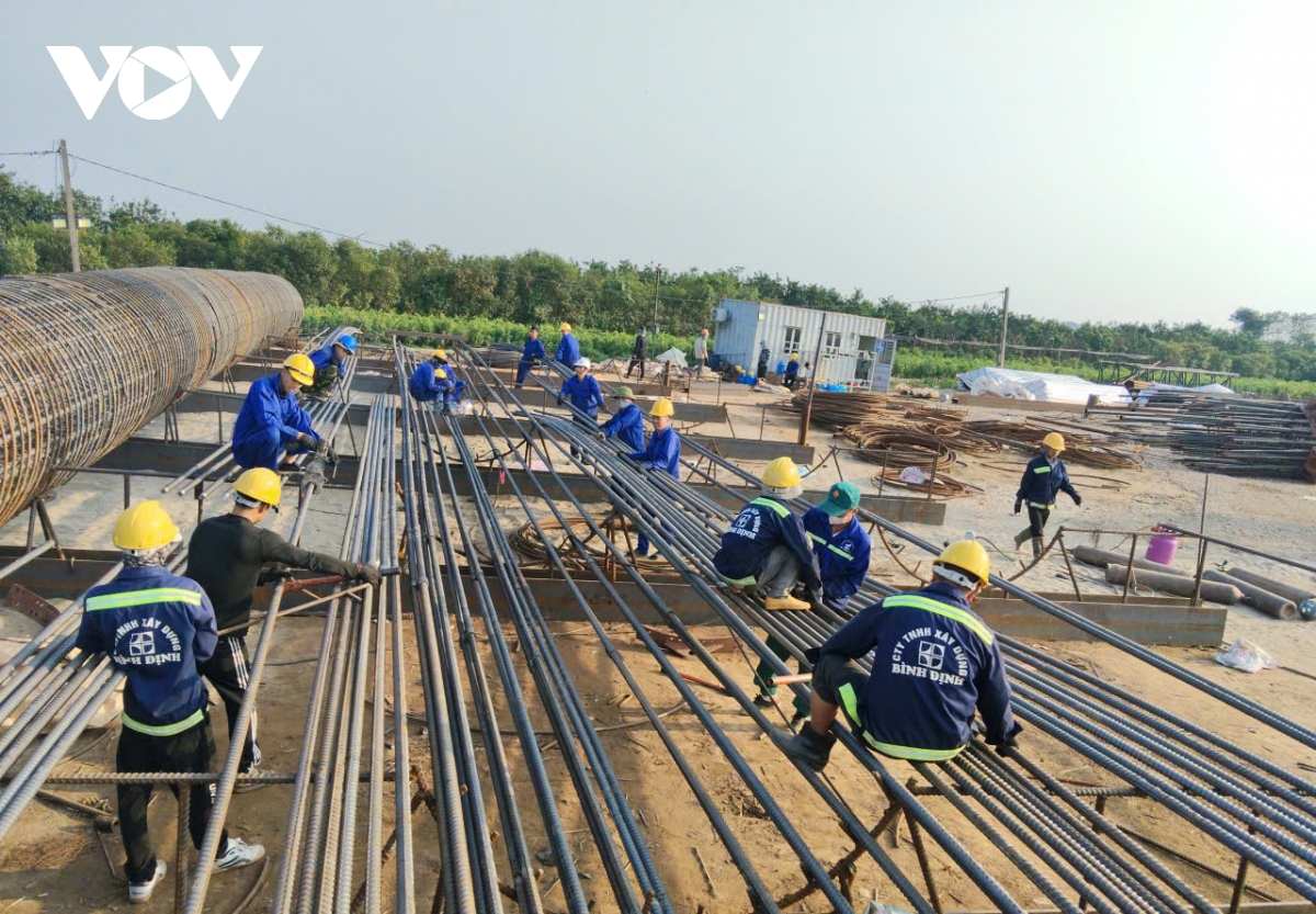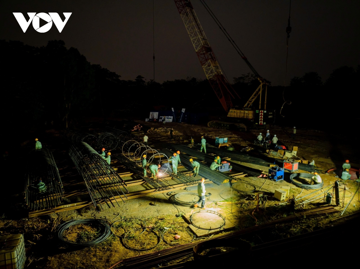 Để đua tốc độ về đích và "chạy" mùa mưa lũ, hiện nhiều mũi thi công (vừa khoan đào, vừa làm lồng sắt, đổ bê tông...) ở hạng mục làm móng, trụ cầu được thực hiện đồng bộ.