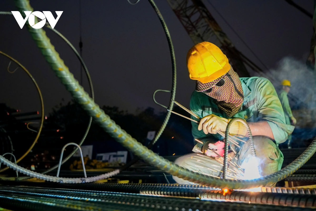 Ghi nhận của phóng viên VOV.VN tại công trường cầu Trần Hưng Đạo những ngày đầu năm mới cho thấy, không khí thi công đang rất khẩn trương.