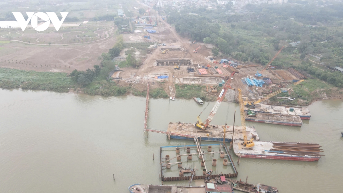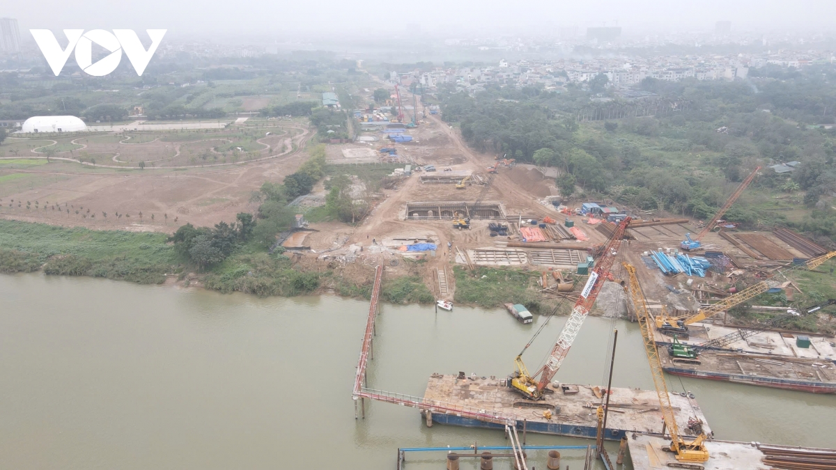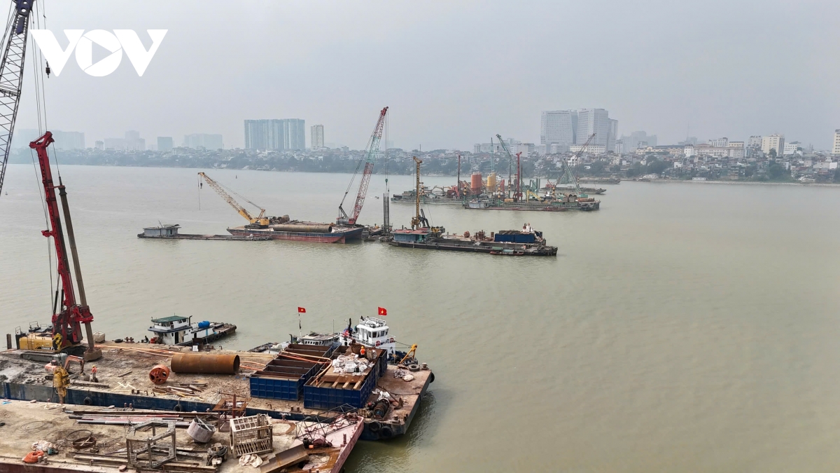 Trong khi đó, mặt bằng và các trụ cầu vượt sông ở giữa sông Hồng và bờ sông phía phường Long Biên được Ban QLDA đánh giá, đang thi công với khối lượng xây lắp vượt tiến độ.