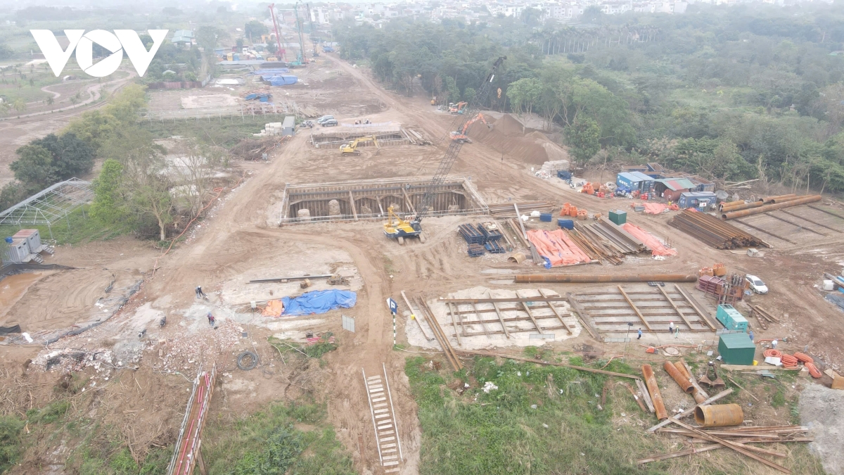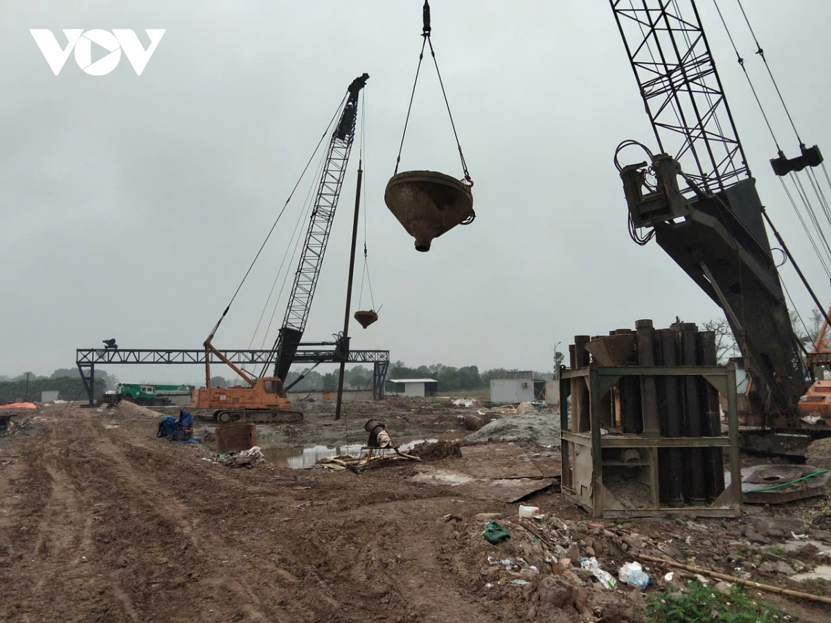 Ở phần cầu dẫn phía Long Biên, các mũi khoan cọc nhồi cũng đang được triển khai đồng loạt, phấn đấu hoàn thành toàn bộ trong tháng 4/2026.