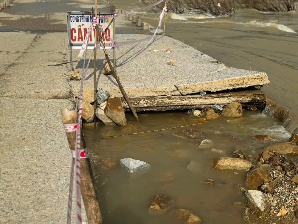 Cầu tràn Thạch Nham được xây dựng hơn 30 năm, vốn là công trình thủy lợi tận dụng làm cầu giao thông. Trải qua thời gian dài và các đợt mưa lũ cực đoan, kết cấu công trình xuống cấp nghiêm trọng, không còn đáp ứng nhu cầu lưu thông.