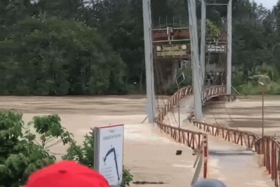 Thời điểm cầu bị cuốn đi, có nhiều người dân đứng hai bên bờ chứng kiến vụ việc. Không còn cầu treo, người dân sẽ phải đi đường vòng hơn 3 km thay vì chỉ hơn trăm mét như trước đây.