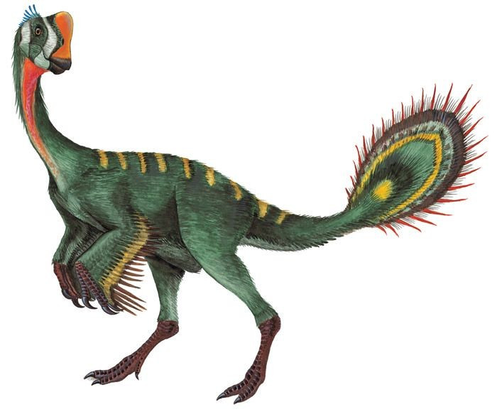 Tồn tại vào cuối kỷ Phấn Trắng. Nomingia sống cách đây khoảng 70 triệu năm, trong giai đoạn đa dạng hóa mạnh mẽ của các loài khủng long có lông tại châu Á. Ảnh: Pinterest.