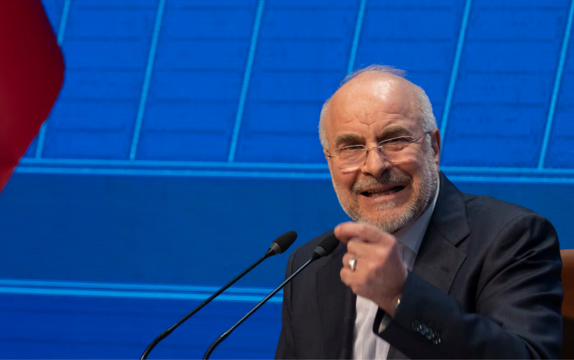 Ông Bagher Ghalibaf, Chủ tịch Quốc hội Iran, phát biểu tại một cuộc họp báo ngày 2/12/2025 ở Tehran. Ảnh: NurPhoto
