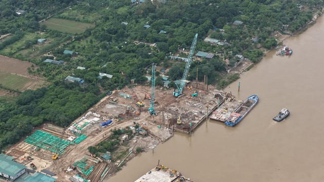 Dự án cầu Tứ Liên đang được triển khai. Ảnh: Hoàng Long.