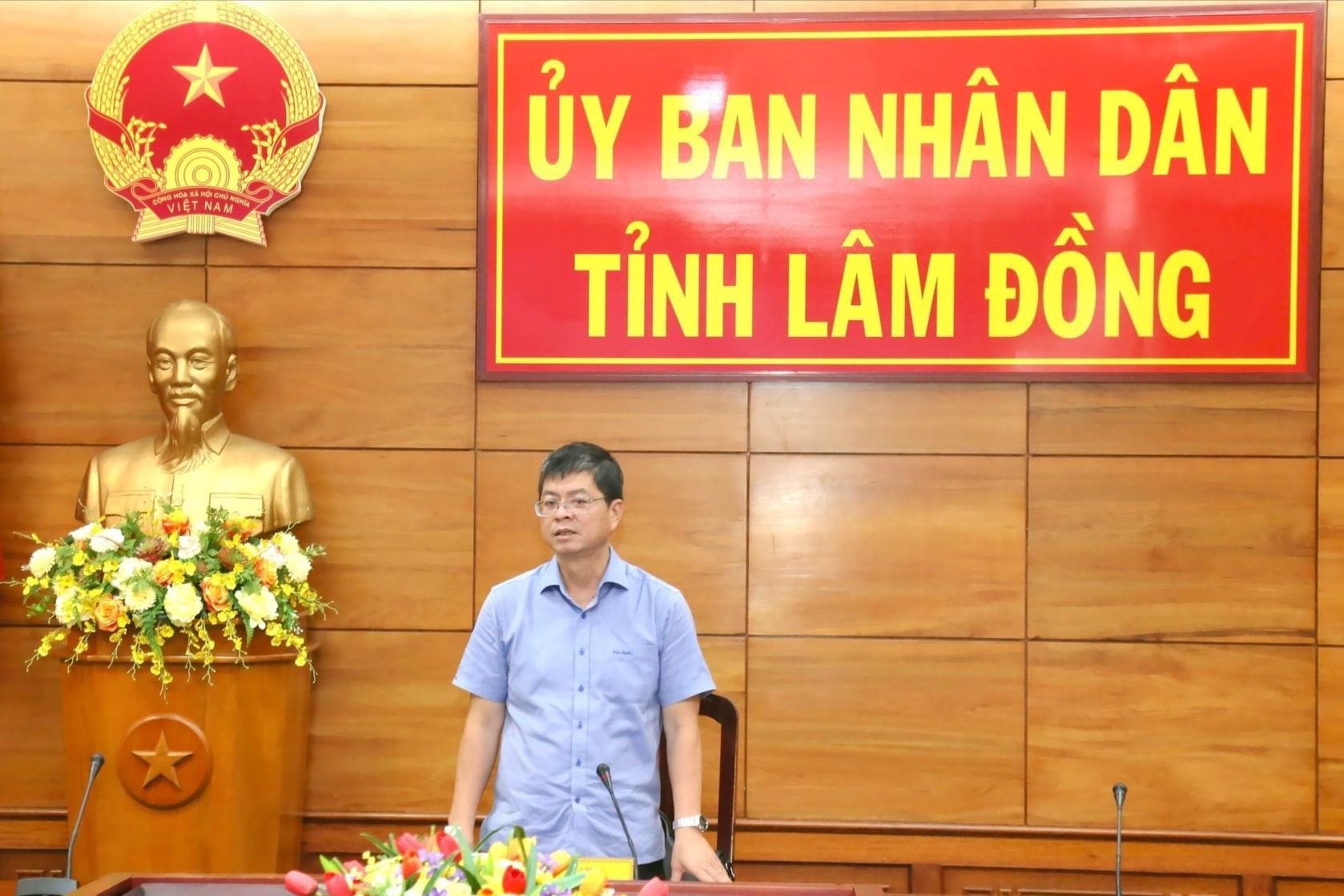 Ông Nguyễn Hồng Hải - Ủy viên Ban Thường vụ Tỉnh ủy, Phó Chủ tịch UBND tỉnh Lâm Đồng phát biểu tại cuộc họp.