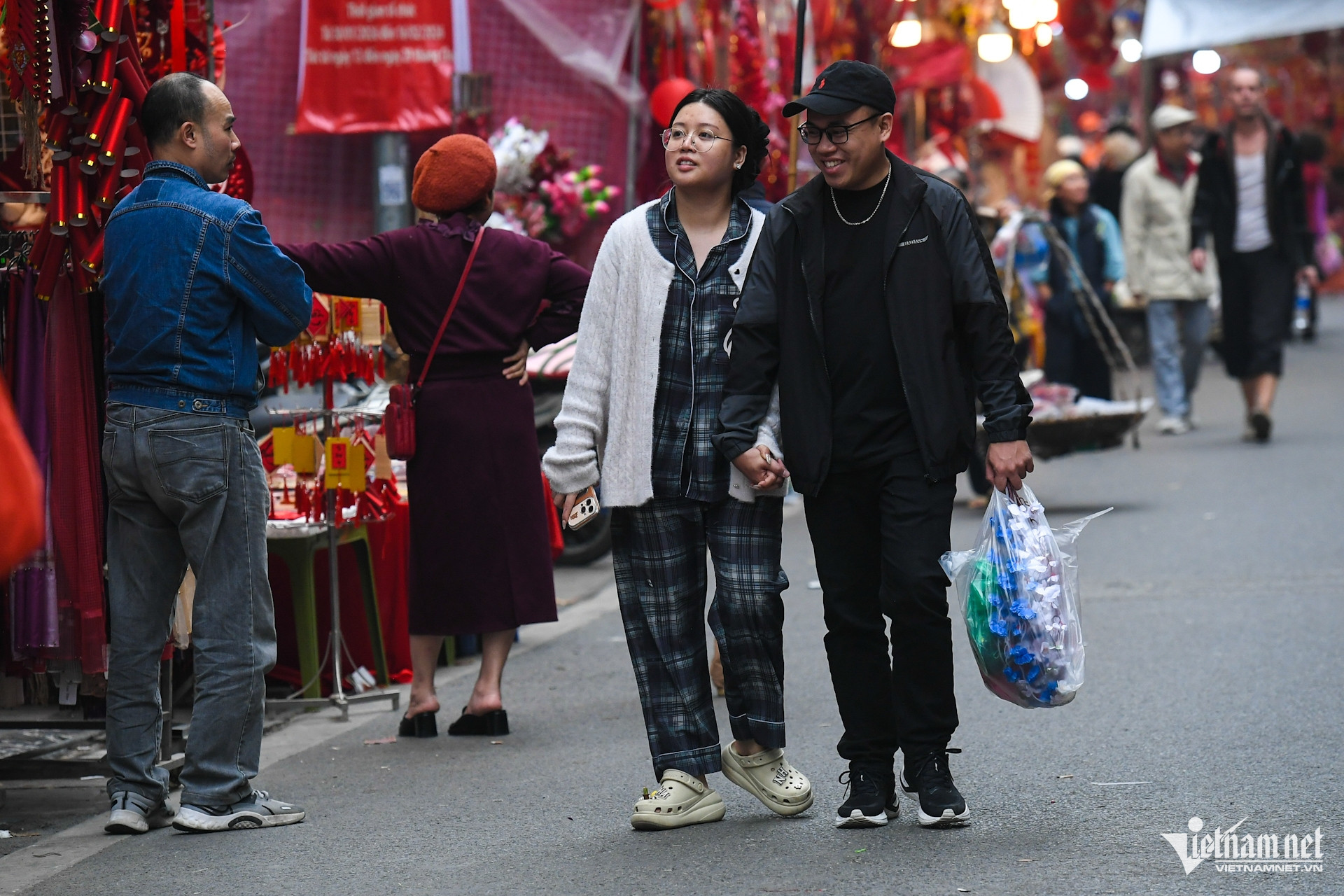 Nhiều tiểu thương ở các phố Hàng Rươi, Hàng Mã... thuộc chợ hoa Hàng Lược cũng bày bán các mặt hàng trang trí Tết và thu hút đông khách hàng ghé. Khung cảnh nhộn nhịp cùng với thời tiết se lạnh tạo cảm giác Tết Bính Ngọ đang kề cận.