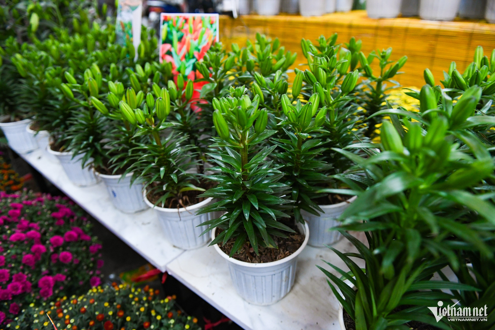 Hoa ly lùn là một mẫu cây độc lạ, thu hút nhiều khách hàng dừng lại hỏi giá. Chị Bích Ngọc bán hàng chia sẻ: "Mẫu ly này rất lạ mắt, hoa nhỏ li ti, có thể trồng chơi qua Tết. Giá chỉ 90.000 đồng/chậu nên cũng dễ mua".