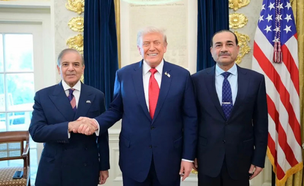 Thủ tướng Pakistan Muhammad Shehbaz Sharif (bìa trái) và Thống tướng Asim Munir gặp Tổng thống Mỹ Donald Trump, tháng 9/2025. Ảnh: Al Jazeera.