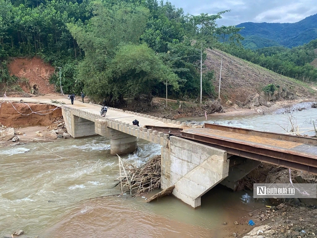 "Chúng tôi chỉ đạo cho các đơn vị làm cầu tạm với quy mô dầm chủ bằng thép, 4 dầm chủ bằng thép I350, mặt cầu bằng thép tấm, mố làm bằng rọ đá. Tuy thời tiết rất khó khăn nhưng với tinh thần chỉ đạo quyết liệt, đến giờ này đã cơ bản thông xe để phục vụ vận chuyển lương thực, cứu hộ, cứu nạn và đi lại của bà con Nhân dân trên đoạn tuyến này", ông Hà nói.