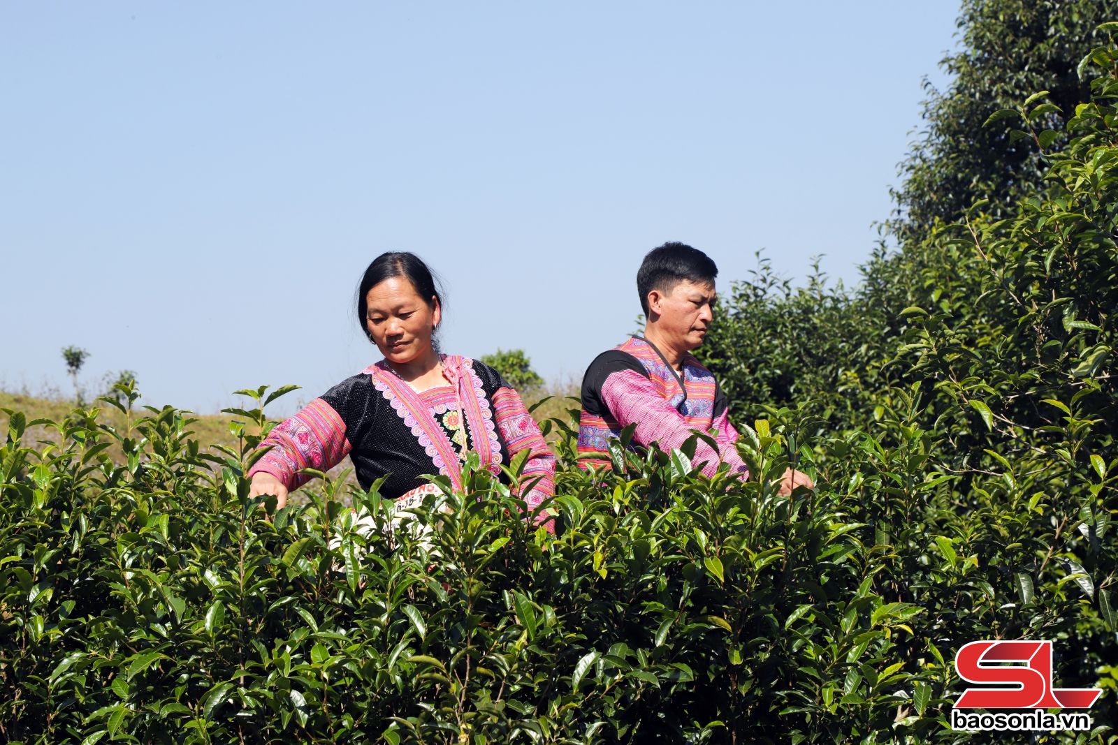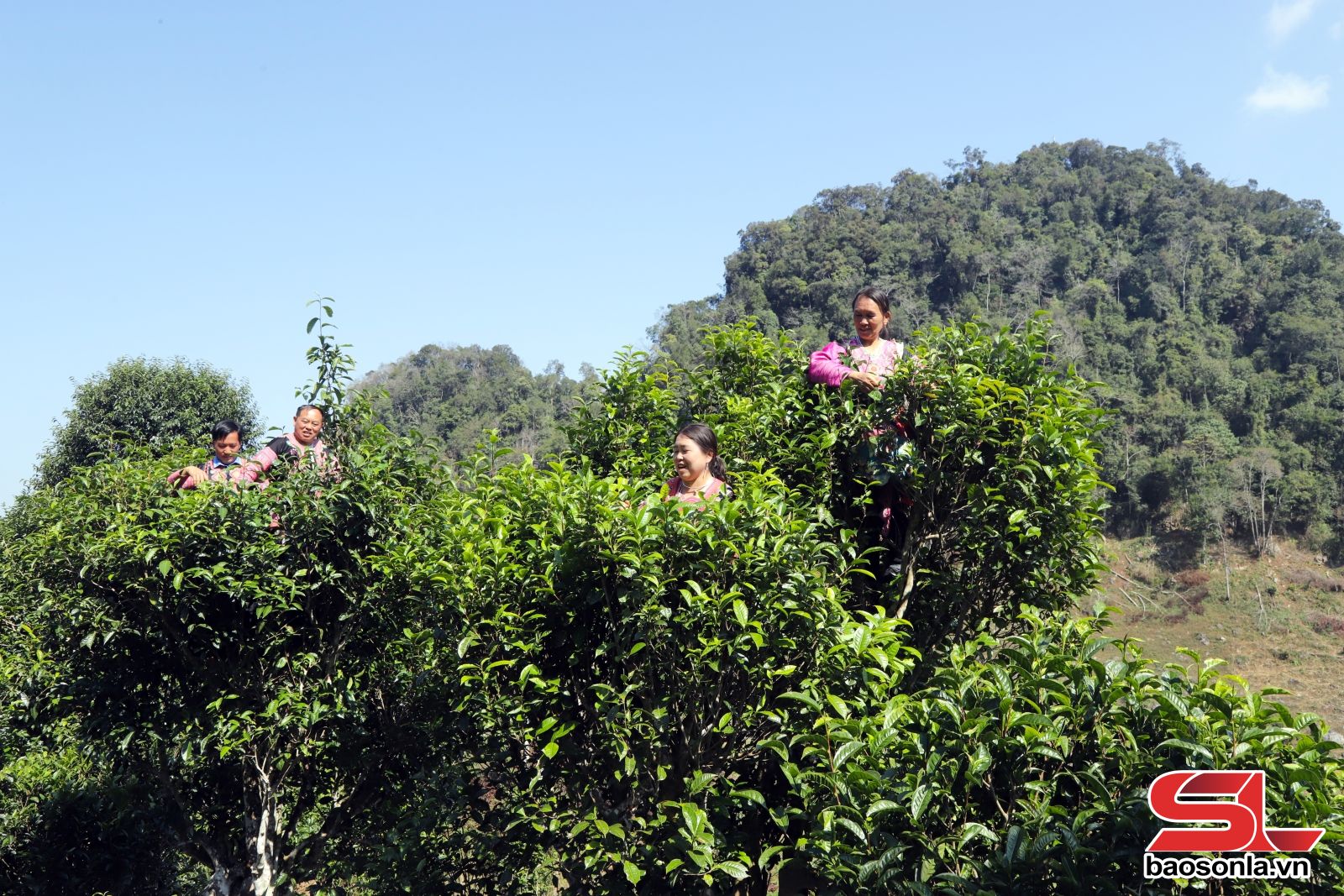 Nhân dân bản Ôn Ốc , xã Chiềng Hặc thu hái chè cổ thụ.