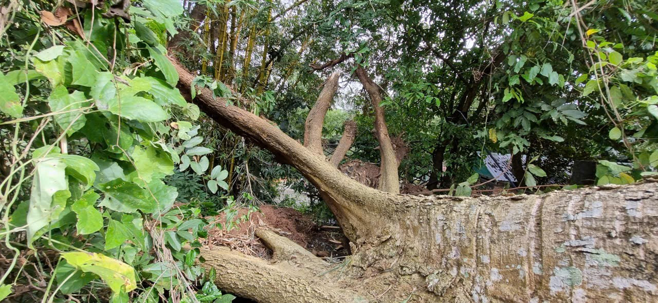 Lo ngại mất an toàn, gia đình ông An đã đề nghị chủ cây chặt hạ để phòng ngừa rủi ro. Sáng 13/12, chủ cây liên hệ thợ đến cắt bỏ, tuy nhiên khi thợ chưa kịp có mặt thì cây Tung đã bất ngờ gãy đổ, gây thiệt hại nặng nề cho ngôi nhà.