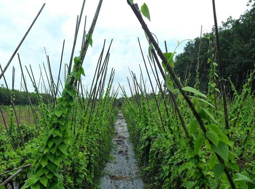 Để cây phát triển tốt, nên chọn chân đất nhiều mùn, nhiều dinh dưỡng và có cây chà chống đỡ. Trồng theo hàng phải làm luống. Ảnh: Internet