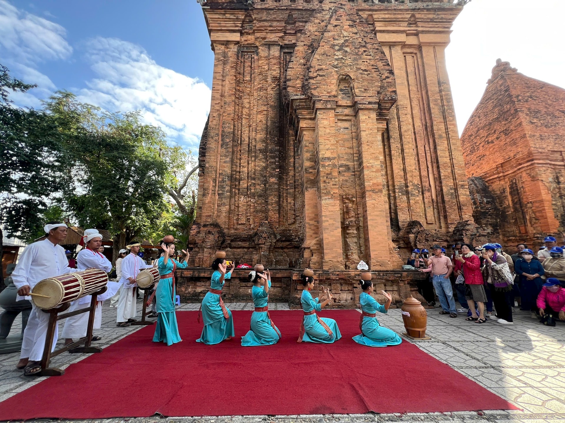 Du khách say sưa với điệu múa bên Tháp bà Ponagar. Ảnh: Bảo Hân