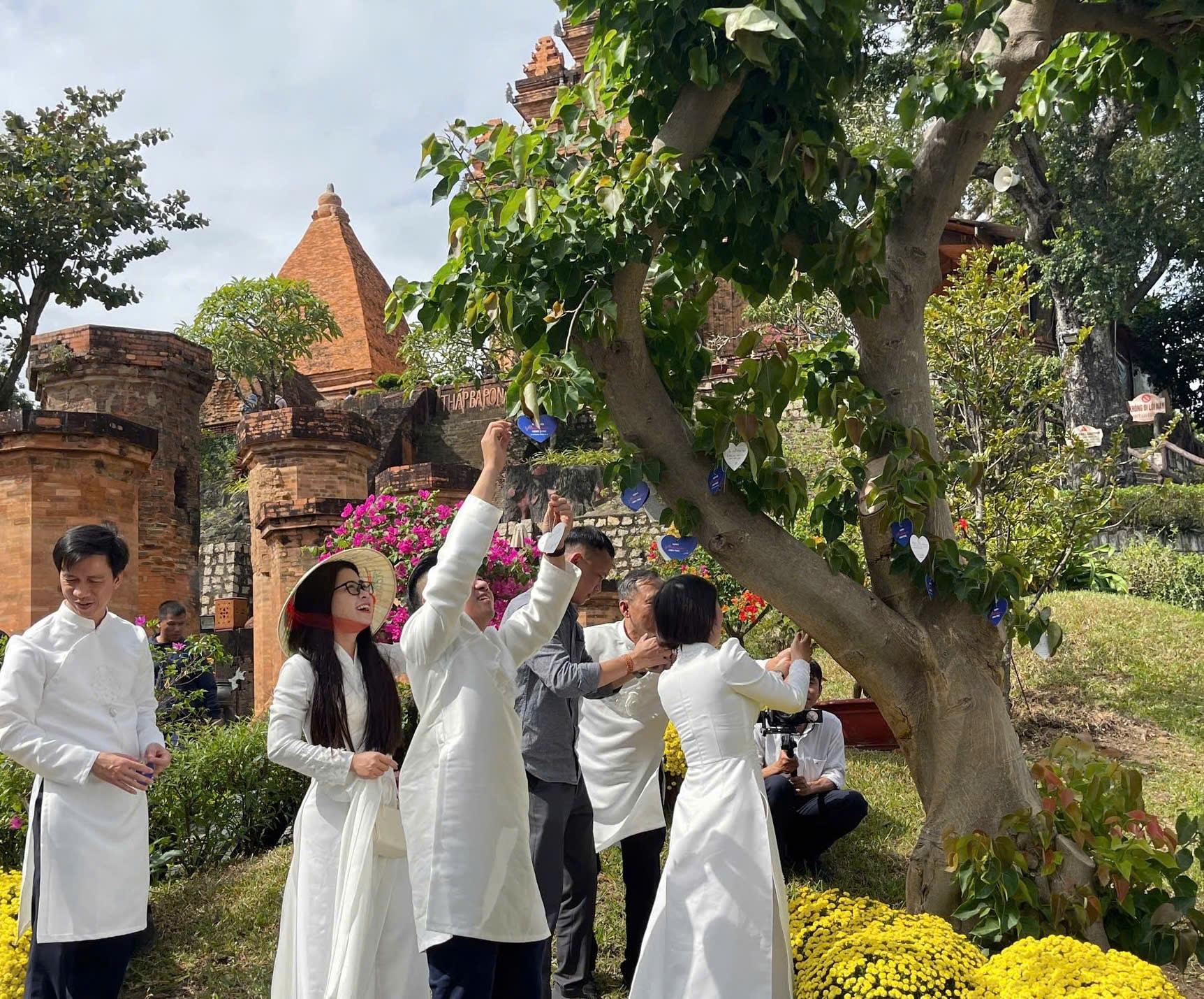 Sự kiện trồng cây hạnh phúc tại Tháp bà Ponagar thu hút hàng nghìn du khách gửi lời chúc quốc thái dân an và Đại hội Đảng toàn quốc lần thứ XIV thành công. Ảnh: Bảo Hân
