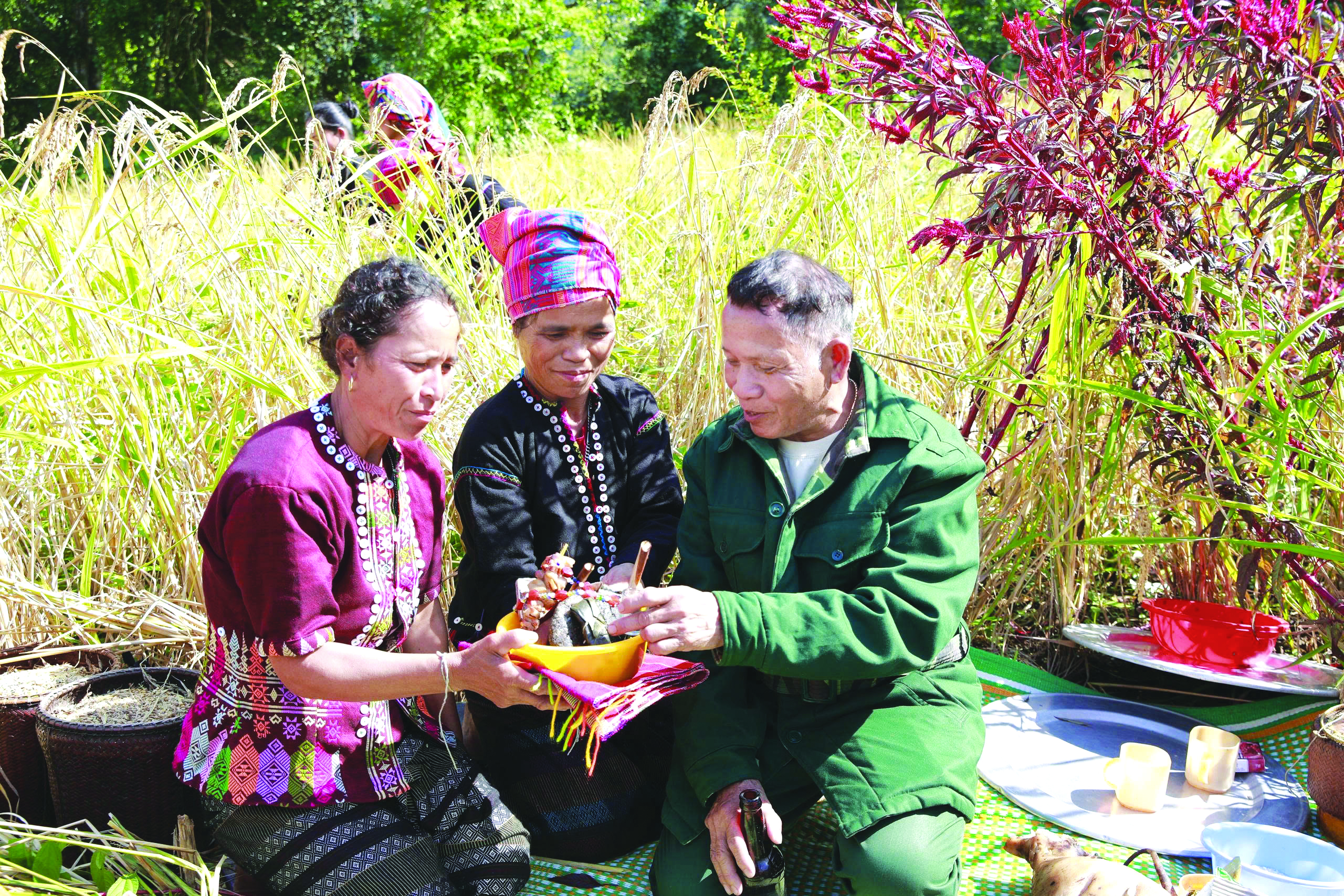 Già làng Hồ Văn Pu làm nghi lễ cúng thần lúa Giã A Bôn - Ảnh:P.T.Lâm