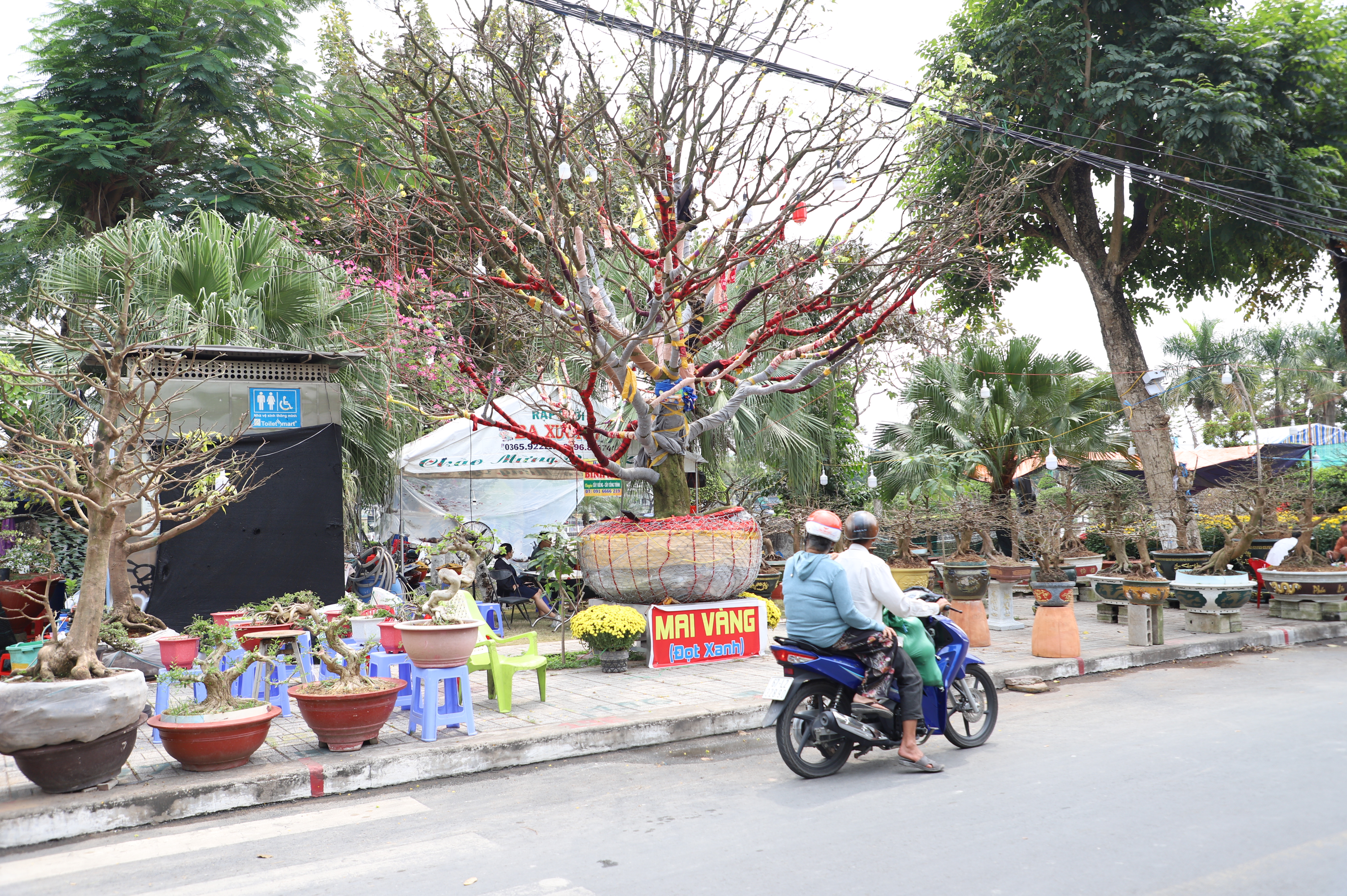 Những ngày giáp Tết Nguyên đán Bính Ngọ 2026, chợ hoa xuân Long Xuyên (tỉnh An Giang) trưng bày nhiều cây mai cổ thụ, dáng đẹp. Trong đó, thu hút sự quan tâm của nhiều người là cây mai vàng cổ thụ khoảng 100 năm tuổi, được rao bán với giá 3,7 tỷ đồng.