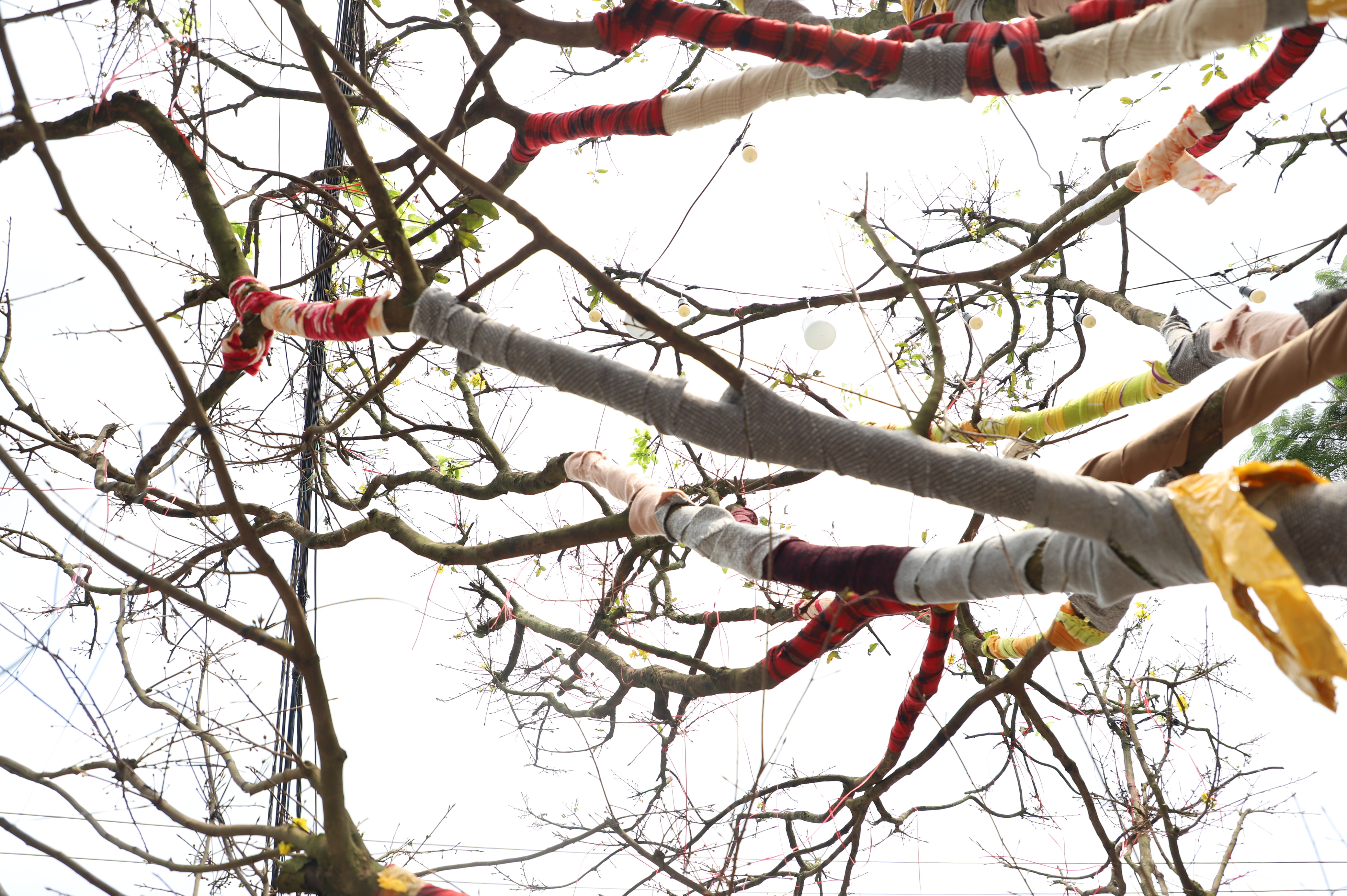 Cây mai khoảng 100 tuổi, cao khoảng 5,5m tính từ mặt chậu, tán rộng gần 7m