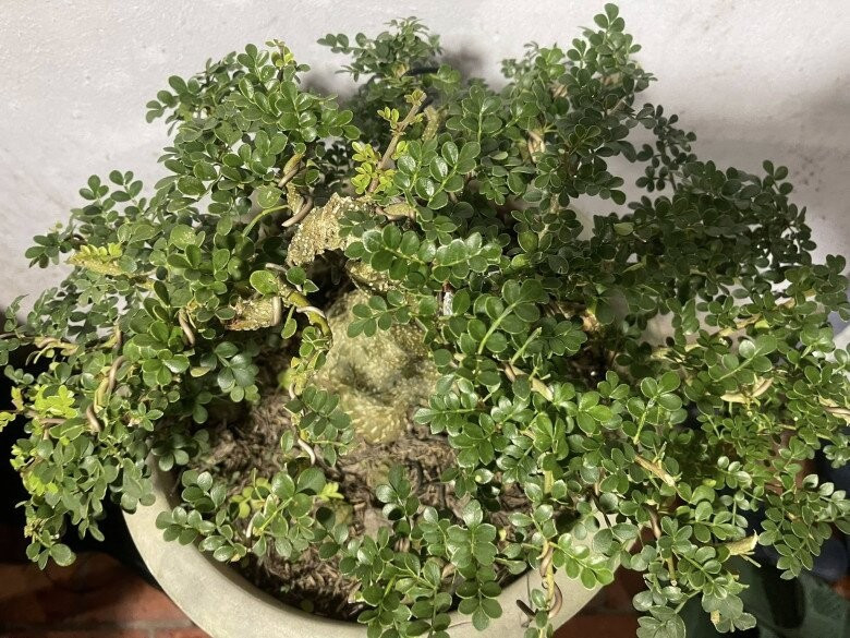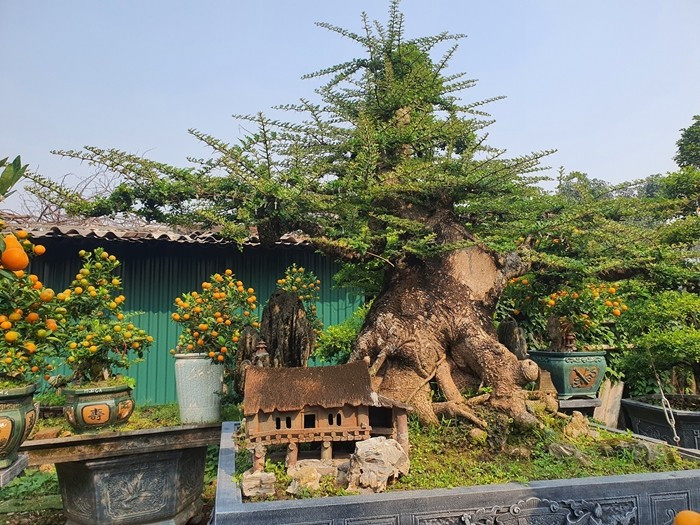 Cây cao khoảng 1,5 mét tính từ mặt chậu, tán rộng 2 mét, đường kính gốc lên tới khoảng 1 mét. Ảnh: Người đưa tin