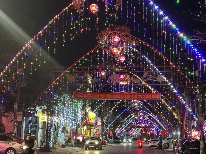 Không chỉ ở thôn Quang Trung, mà ở tất cả các thôn trên địa bàn xã Cẩm Thủy, như Đại Đồng, Tân An, Quang Trung, Hòa Bình..., tuyến đường nào cũng được trang trí cây nêu rực rỡ, lung linh sắc màu.