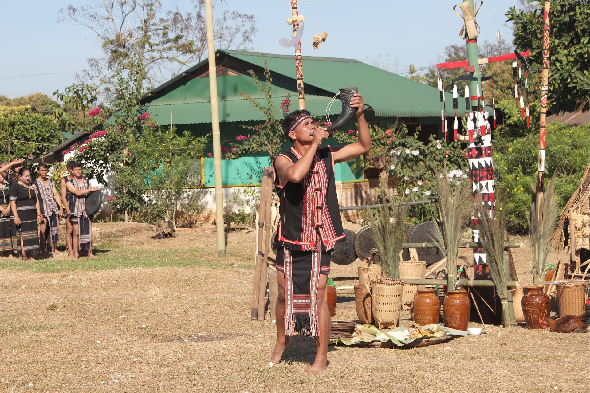 Già làng thổi tù và gọi Yàng bắt đầu vào hội