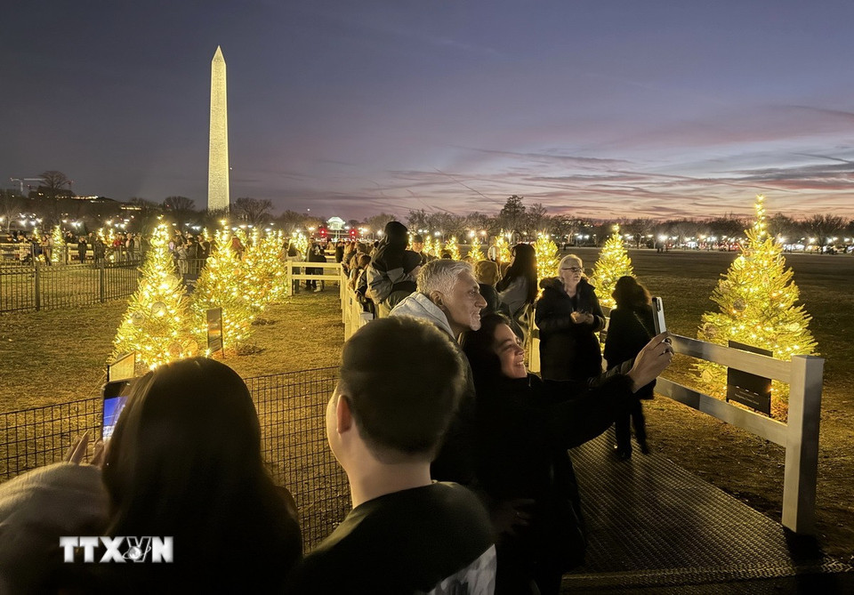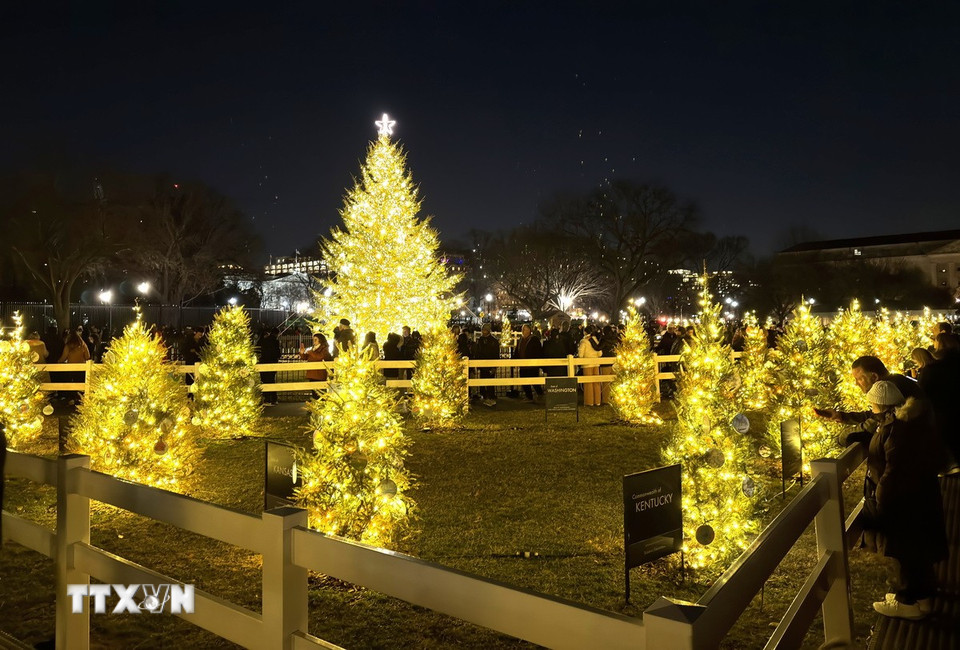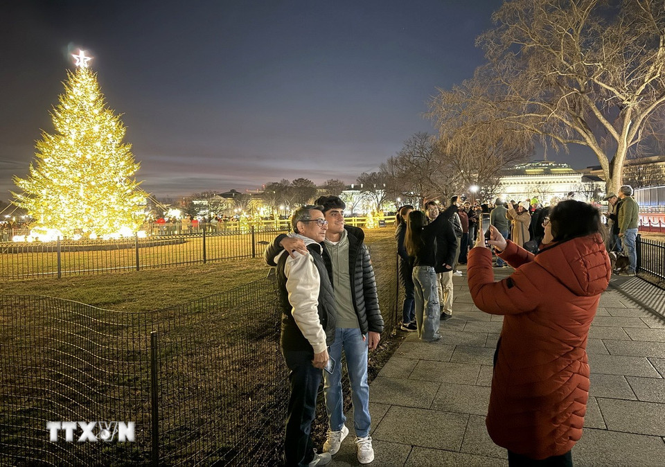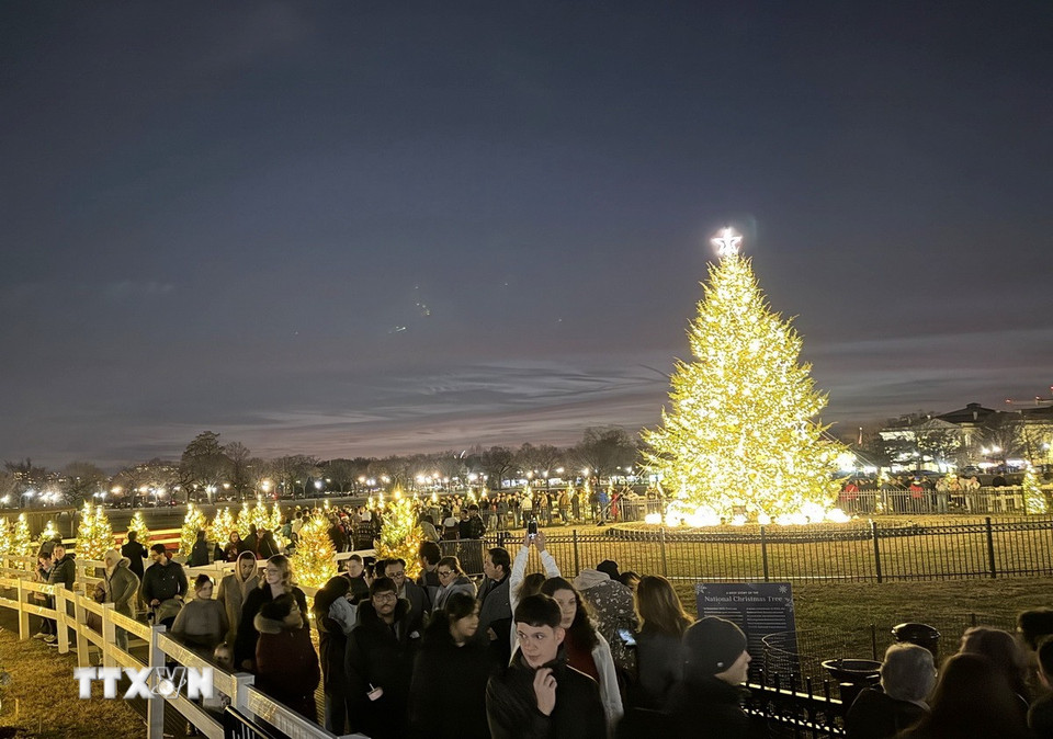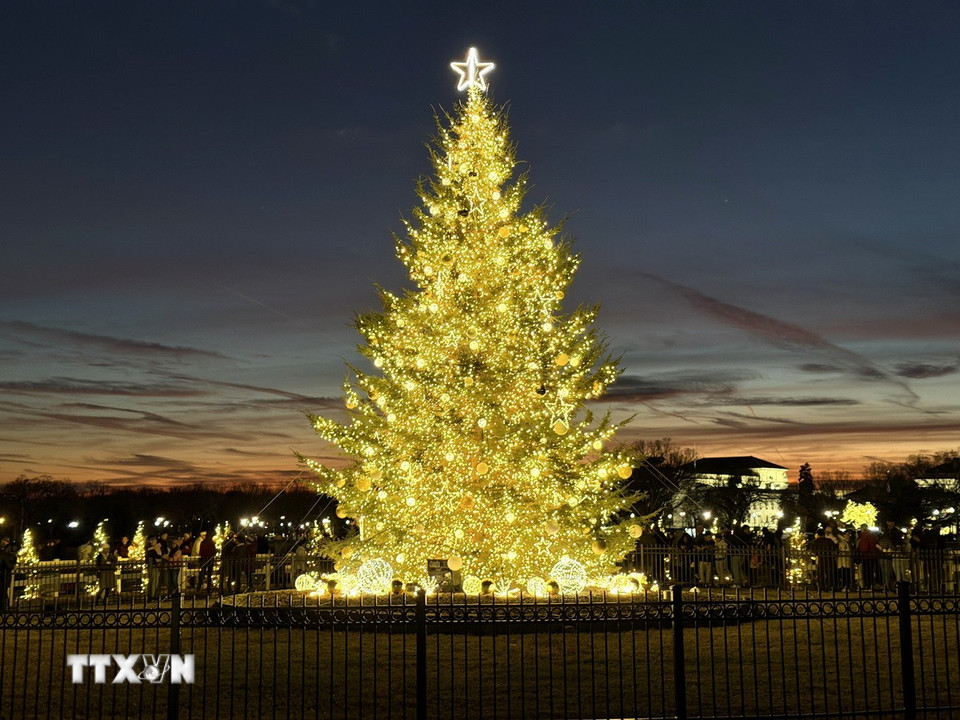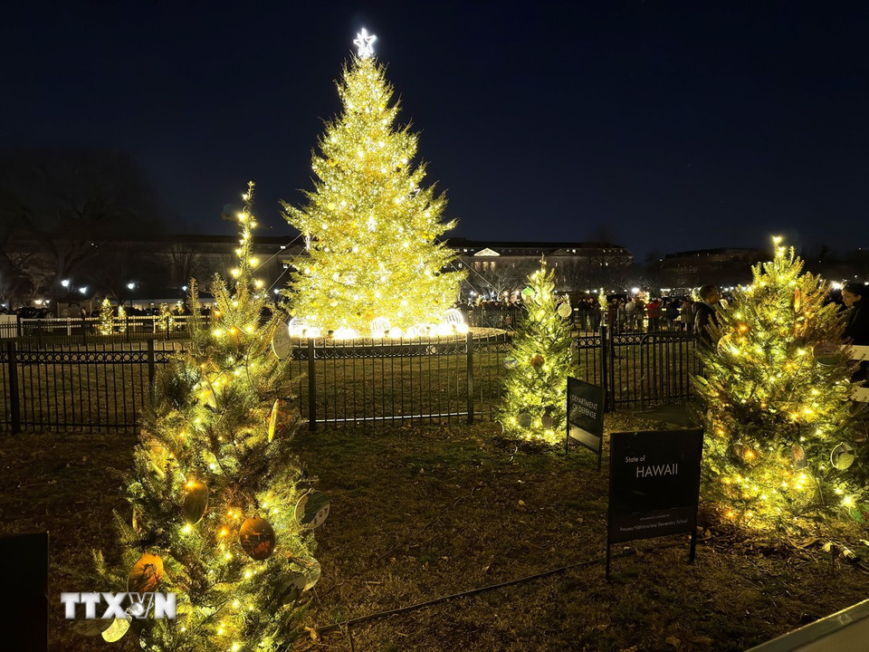 Truyền thống thắp sáng Cây thông Noel Quốc gia bắt đầu từ năm 1923, khi Tổng thống Calvin Coolidge thắp sáng cây linh sam cao gần 15 mét từ Vermont, trang trí bằng 2.500 bóng đèn màu đỏ, trắng và xanh. (Ảnh: Ngọc Quang/TTXVN)