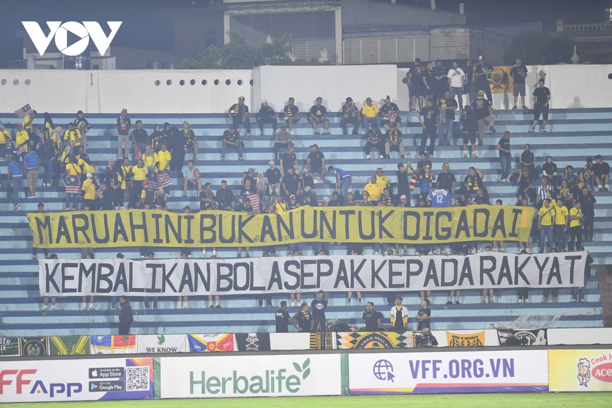 Đáng chú ý, vẫn có khá nhiều CĐV Malaysia đến với sân Thiên Trường để cổ vũ cho đội bóng này. Ngoài việc di chuyển quãng đường rất xa để cổ vũ các cầu thủ, các CĐV Malaysia còn mang đến một băng rôn với thông điệp gửi tới FAM.