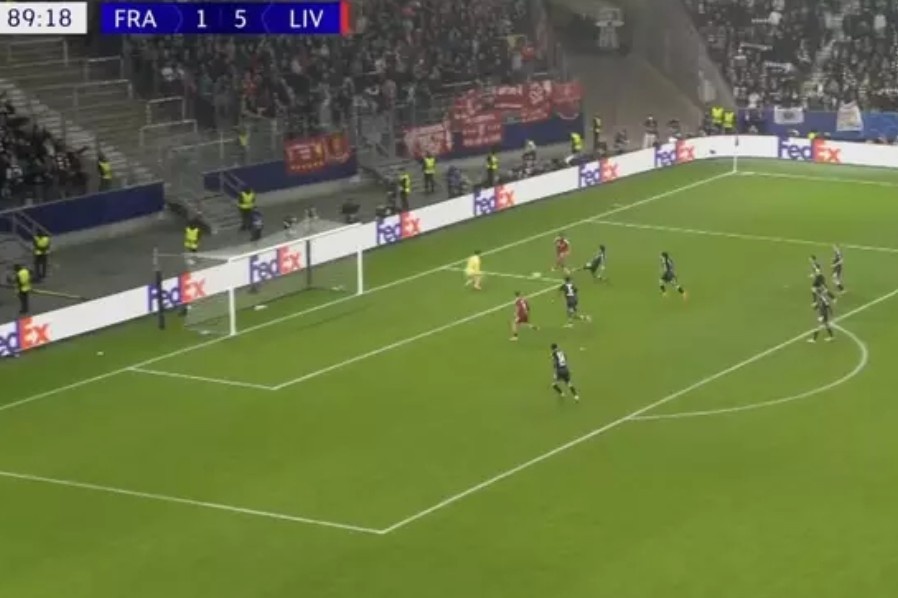 Phút 90 trận đấu trên sân Deutsche Bank Park, Liverpool có đợt tấn công sắc bén. Mohamed Salah nhận bóng ở góc hẹp. Ở phía trong, Florian Wirtz đã chọn được vị trí thuận lợi và chỉ chờ thực hiện một pha đệm bóng vào lưới trống.