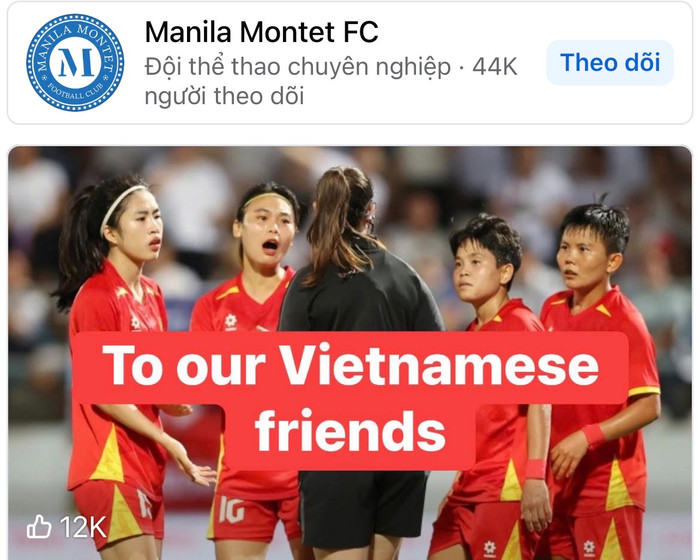 Dưới bài viết của Manila Montet FC, CĐV Philippines lên tiếng thừa nhận Việt Nam xứng đáng vô địch SEA Games bóng đá nữ. Ảnh: Manila Montet FC