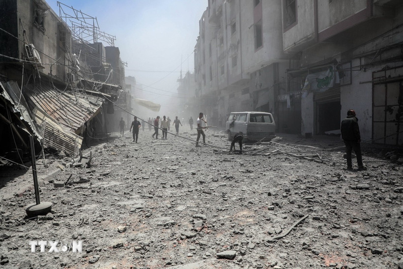 Cảnh đổ nát sau các cuộc không kích của Israel xuống thành phố Gaza ngày 31/5/2025. (Ảnh: THX/TTXVN)