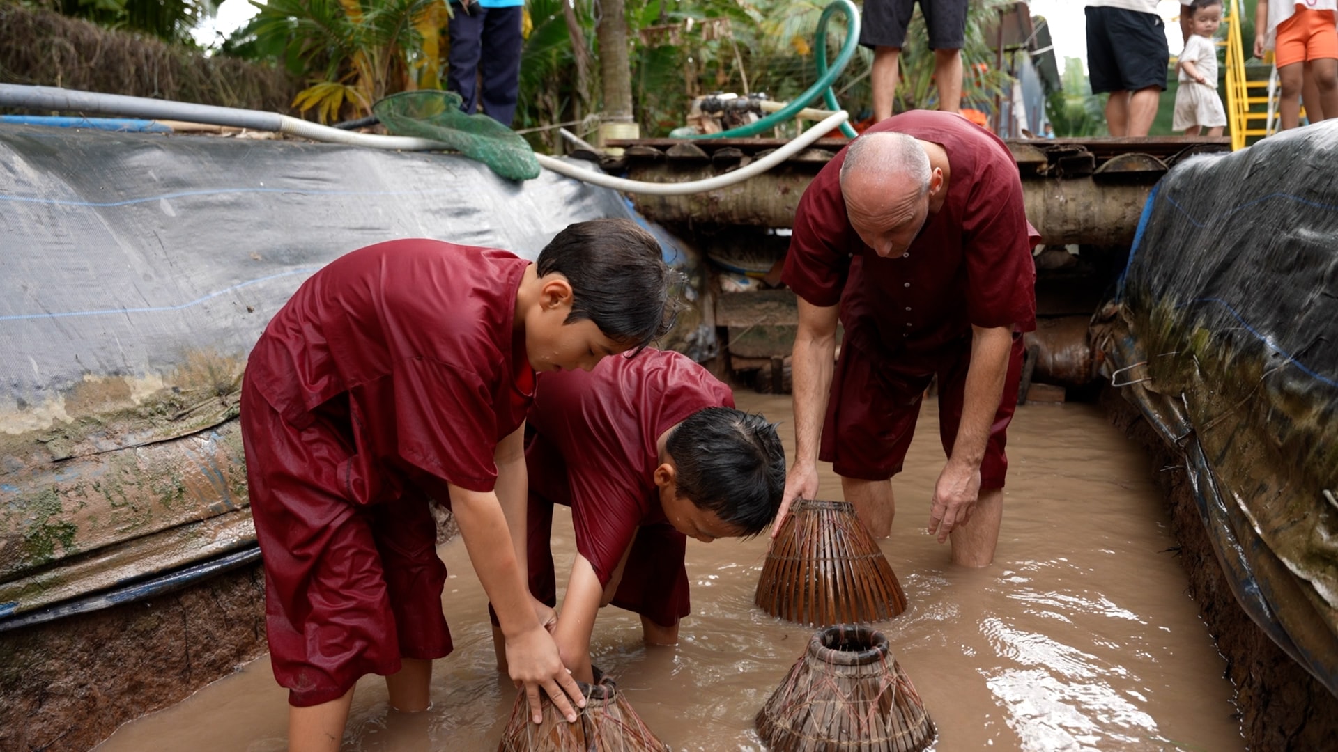 Sự hào hứng của hai đứa trẻ cùng sự lăn xả của người cha đã tạo nên một không khí sôi nổi suốt chuyến đi. Những hình ảnh ghi lại cho thấy sự hòa nhập nhanh chóng của du khách quốc tế với nếp sinh hoạt miền Tây, tạo nên những khoảnh khắc đáng giá trong hành trình về thăm Việt Nam của gia đình.