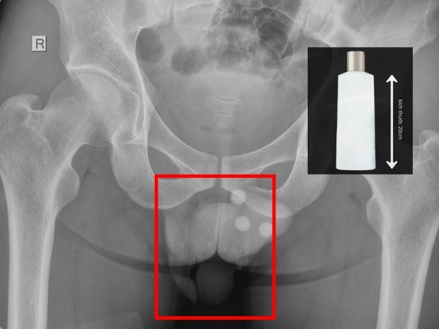BS.CKII Nguyễn Vũ An – Trưởng khoa Ngoại Tổng quát cho biết, qua thăm khám lâm sàng và chụp X-quang, các bác sĩ xác định có một chai nhựa nằm sâu trong trực tràng, không thể lấy ra bằng các thủ thuật thông thường. Ê-kíp đã tiến hành gây tê tủy sống, nong hậu môn và cẩn trọng lấy dị vật ra ngoài.