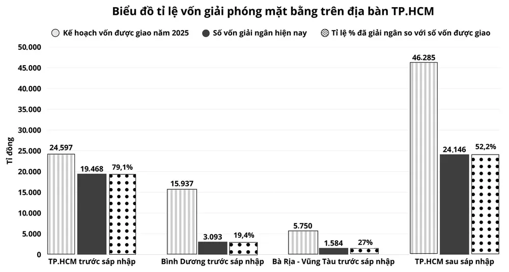 Giải ngân vốn giải phóng mặt bằng trên địa bàn TP.HCM hiện đã đạt hơn 52%. Đồ họa: Kim Anh