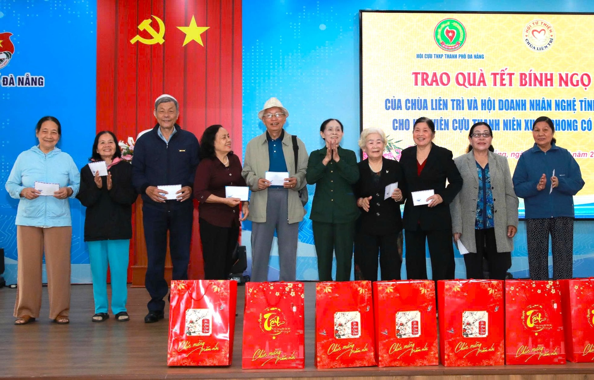 Hội Cựu thanh niên xung phong thành phố tặng quà cho hội viên khó khăn trong dịp Tết. Ảnh: X.Đ