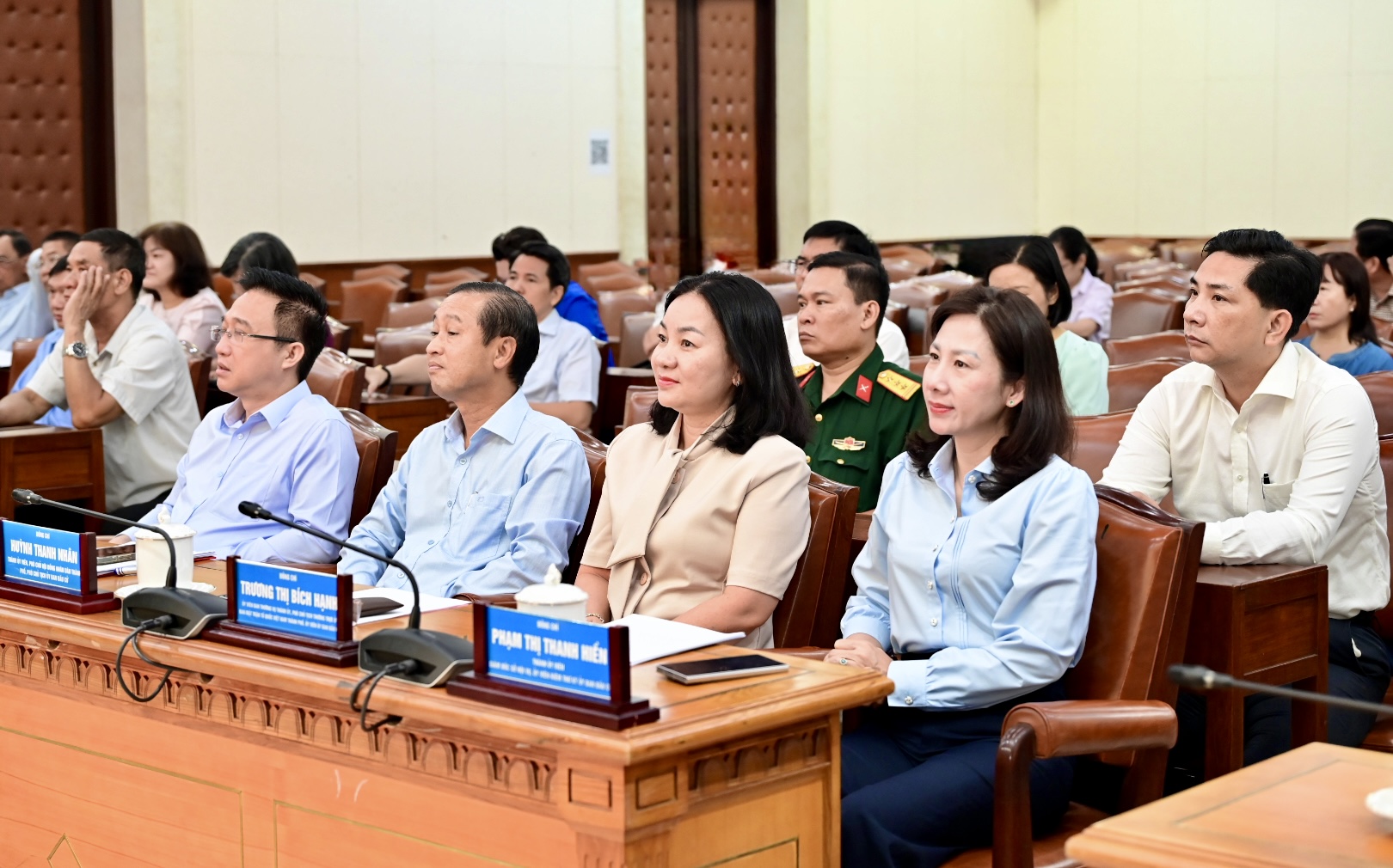 Phó Bí thư Thành ủy TPHCM Văn Thị Bạch Tuyết và Phó Chủ tịch UBND TPHCM Nguyễn Mạnh Cường dự hội nghị. Ảnh: VĂN MINH