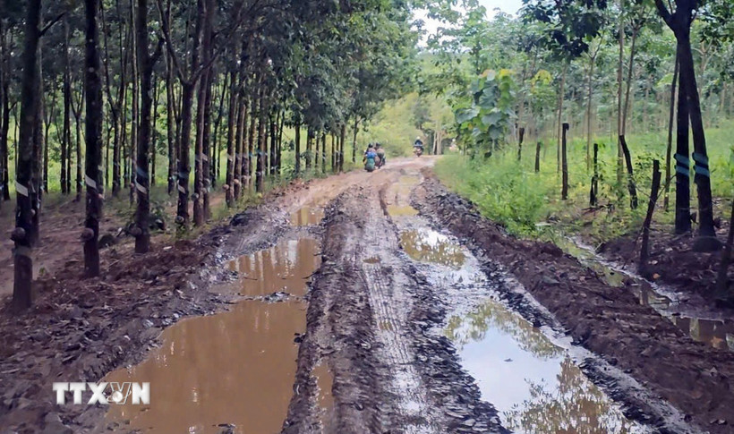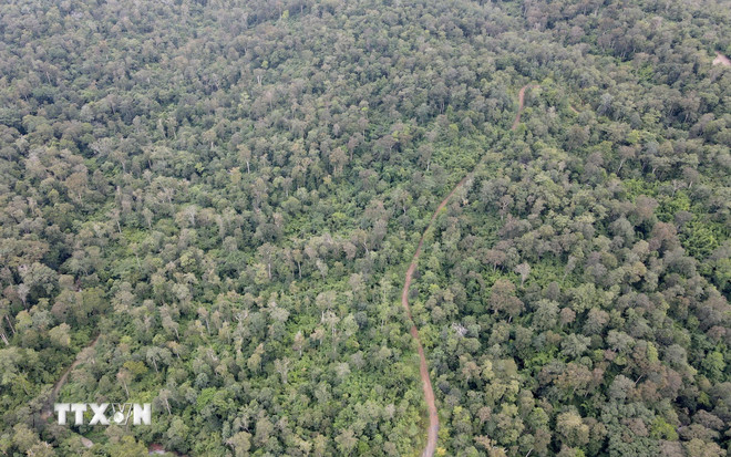 Một đoạn đường vào khu vực rừng do Công ty Trách nhiệm hữu hạn lâm nghiệp Đắk Wil (xã biên giới Đắk Wil, tỉnh Lâm Đồng) quản lý. (Ảnh: TTXVN phát)