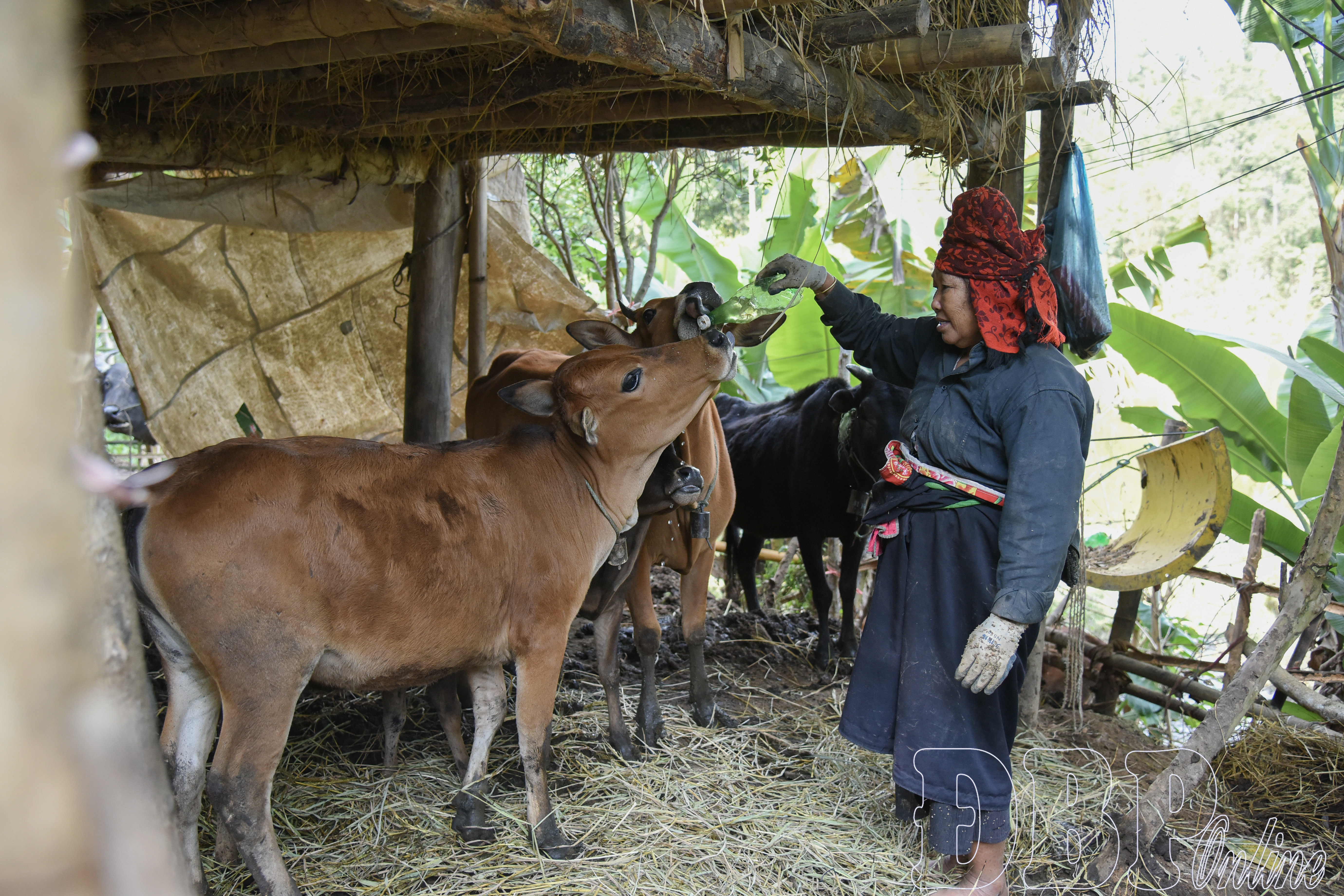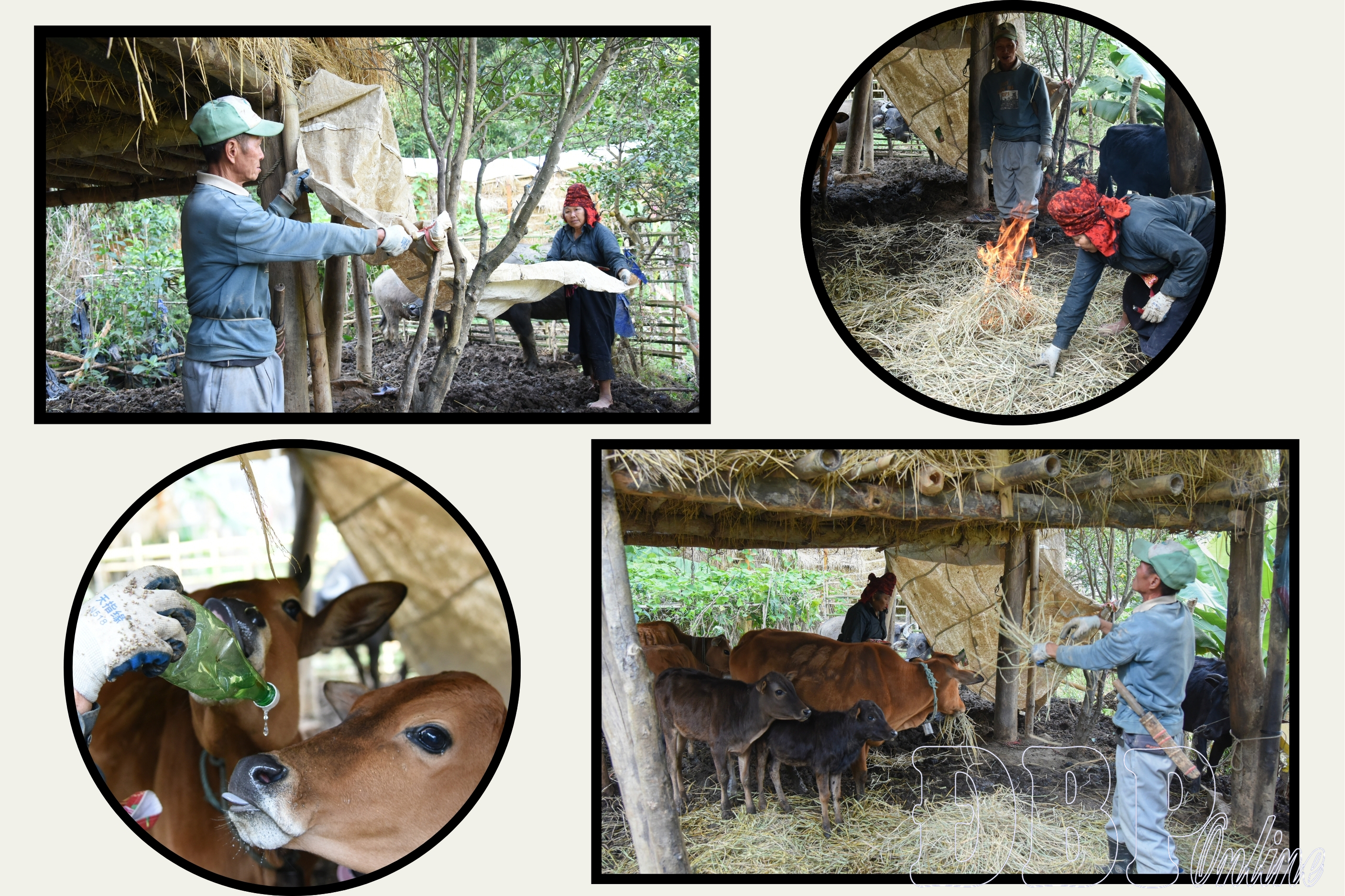 Gia đình ông Cầm Văn Án chủ động các biện pháp phòng chống rét cho gia súc.