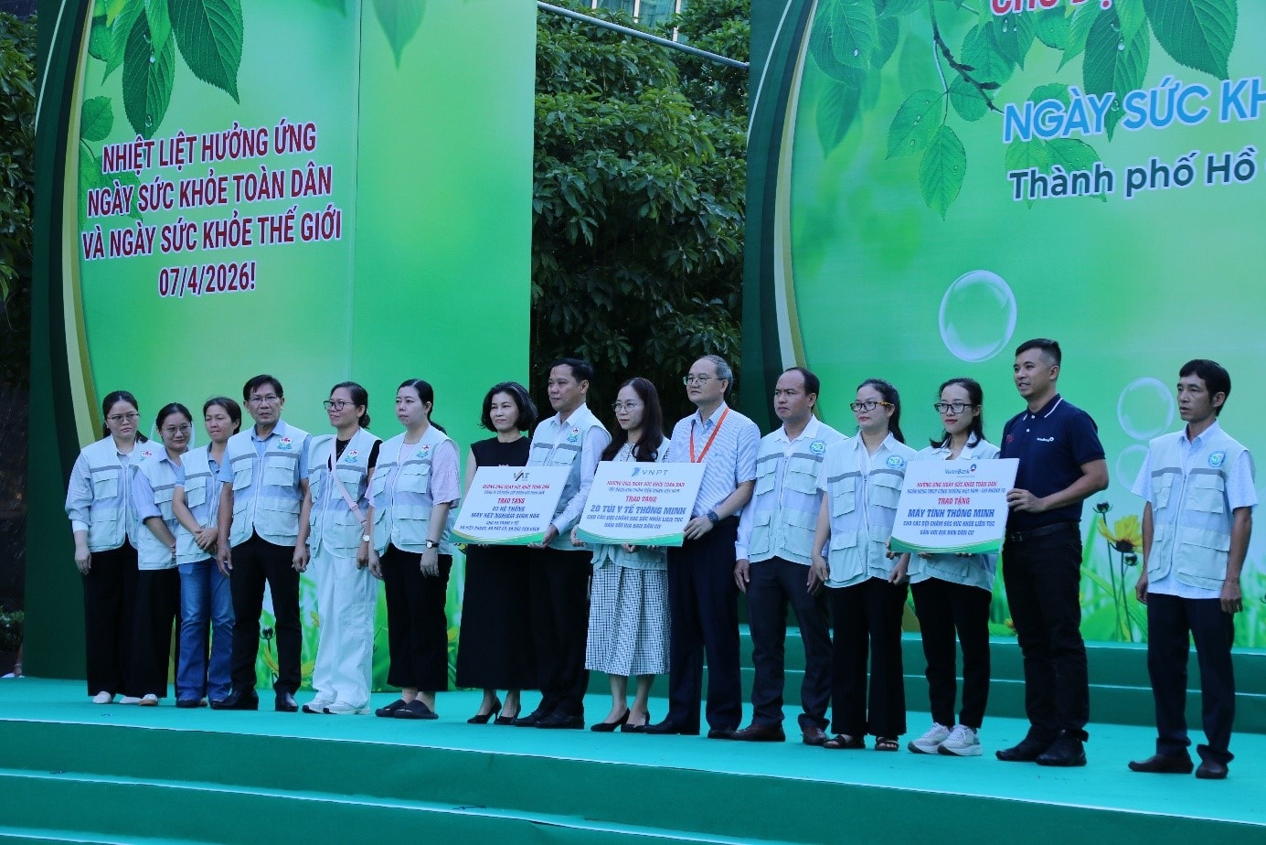Trong không khí sôi nổi hưởng ứng Ngày Sức khỏe toàn dân, sáng ngày 5/4/2026, tại phố đi bộ Nguyễn Huệ (TP. Hồ Chí Minh), một cách tiếp cận mới về chăm sóc sức khỏe dần hiện rõ: bắt đầu từ cộng đồng, từ từng gia đình. Sự kiện thu hút sự tham gia của đông đảo người dân cùng các đơn vị trong ngành y tế, đồng thời ghi nhận sự đồng hành của Tập đoàn Bưu chính Viễn thông Việt Nam (VNPT) qua hoạt động trao tặng “Túi y tế thông minh” cho ngành y tế thành phố. Đây là một bước đi cụ thể, góp phần đưa công nghệ đến gần hơn với đời sống, hướng tới mục tiêu chăm sóc sức khỏe bền vững cho người dân.