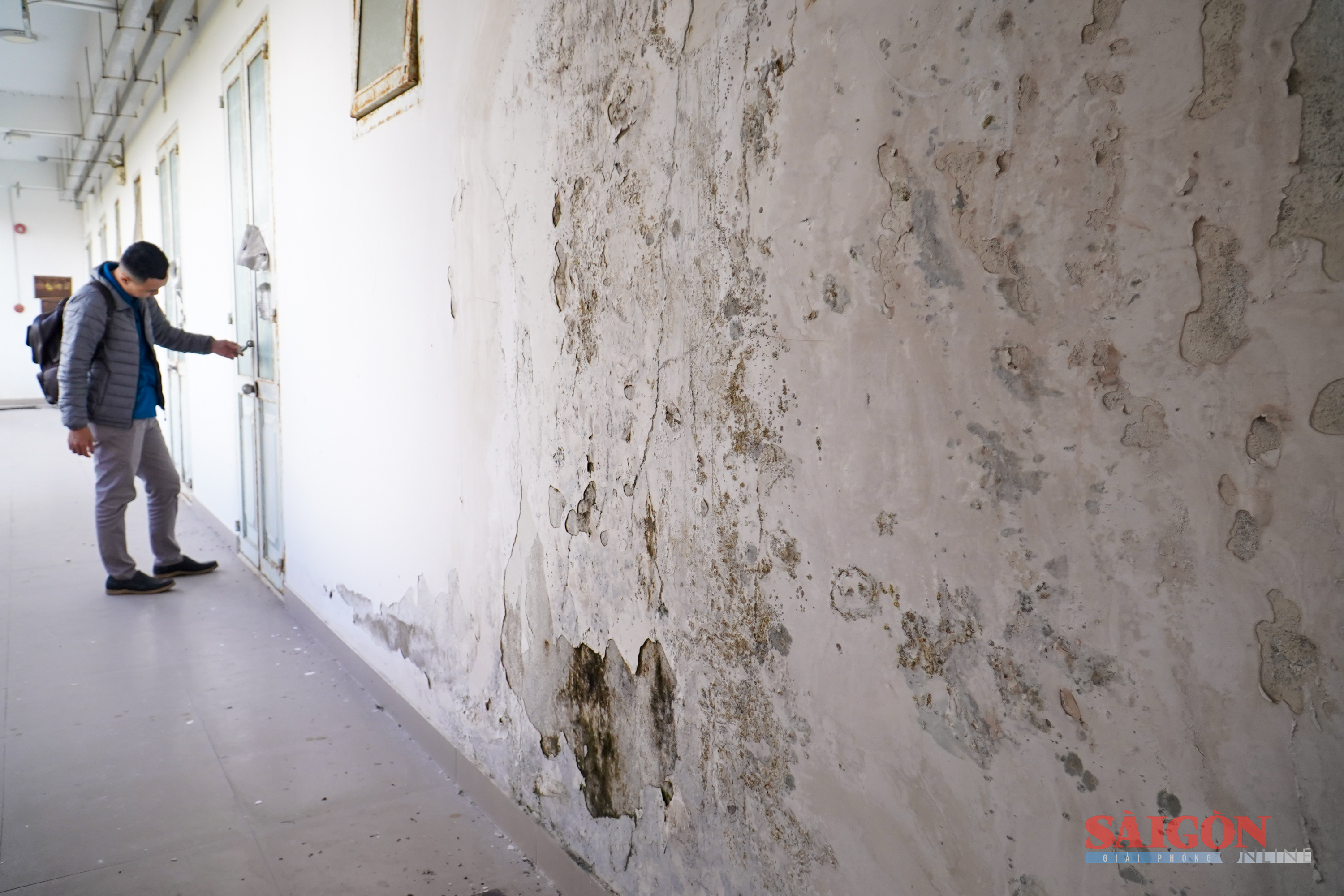 Những bức tường tại ký túc xá đã có dấu hiệu ẩm mốc. Ảnh: HIẾU GIANG