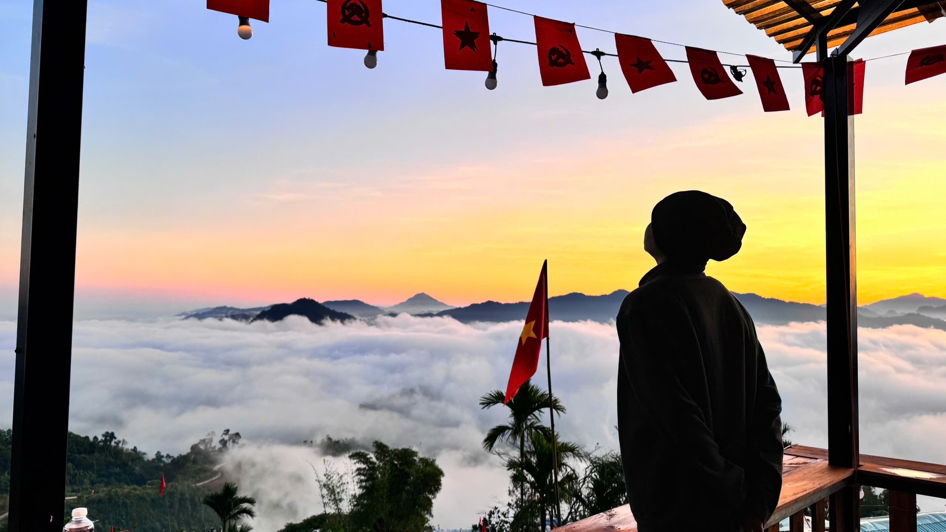 Trong những video được An đăng tải, mặt trời vừa nhô lên cao, bằng hạt bắp, đỏ hỏn, kéo theo màu sáng tím than của bình minh ló rạng, cũng là lúc biển mây hiện ra.