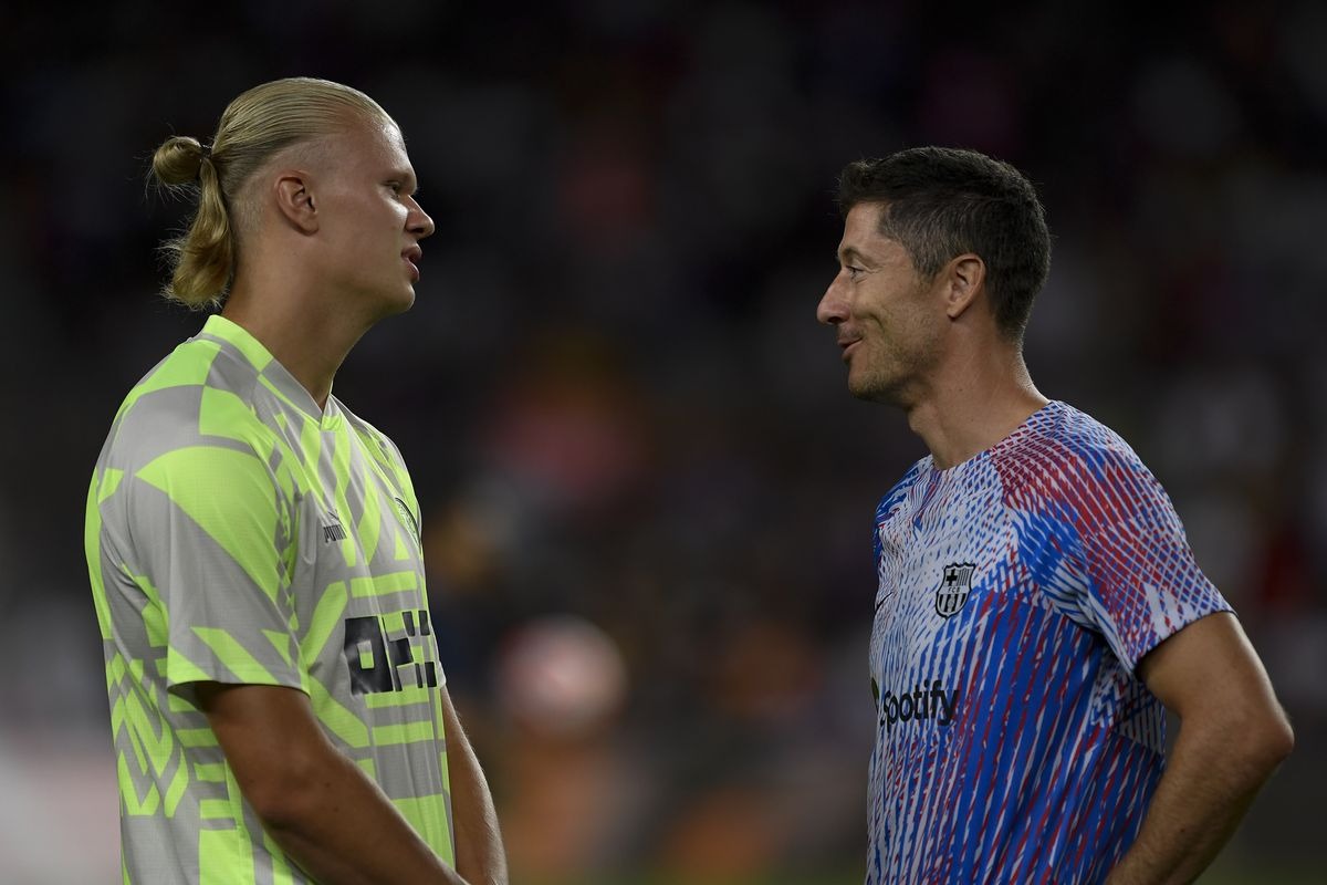 Haaland và Lewandowski có là đồng đội tại Barcelona mùa tới? ẢNH: Adria Puig/Anadolu Agency