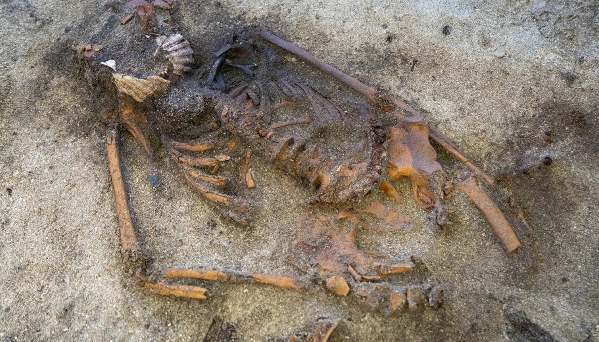 Mộ đã bị hư hại khi một con mương được đào ngang chân mộ vào thế kỷ trước, nhưng chỉ có phần chân của bộ xương bị ảnh hưởng. Ảnh: @Bảo Tàng Quốc Gia Na Uy.