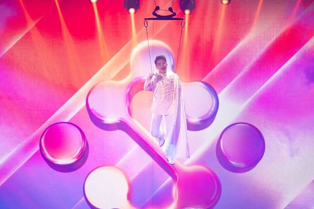 Trong phần biểu diễn này, Chủ tịch KienlongBank Trần Ngọc Minh gây ấn tượng mạnh với khả năng vũ đạo, giọng hát nội lực, và phong thái sân khấu tự tin. Đặc biệt, Chủ tịch Trần Ngọc Minh trực tiếp thực hiện phần đu dây trên không trung, xuất hiện ấn tượng giữa sân khấu lớn. Màn đu dây chưa từng có tiền lệ này lập tức trở thành tâm điểm của đêm gala, khiến khán giả không khỏi trầm trồ và phấn khích.