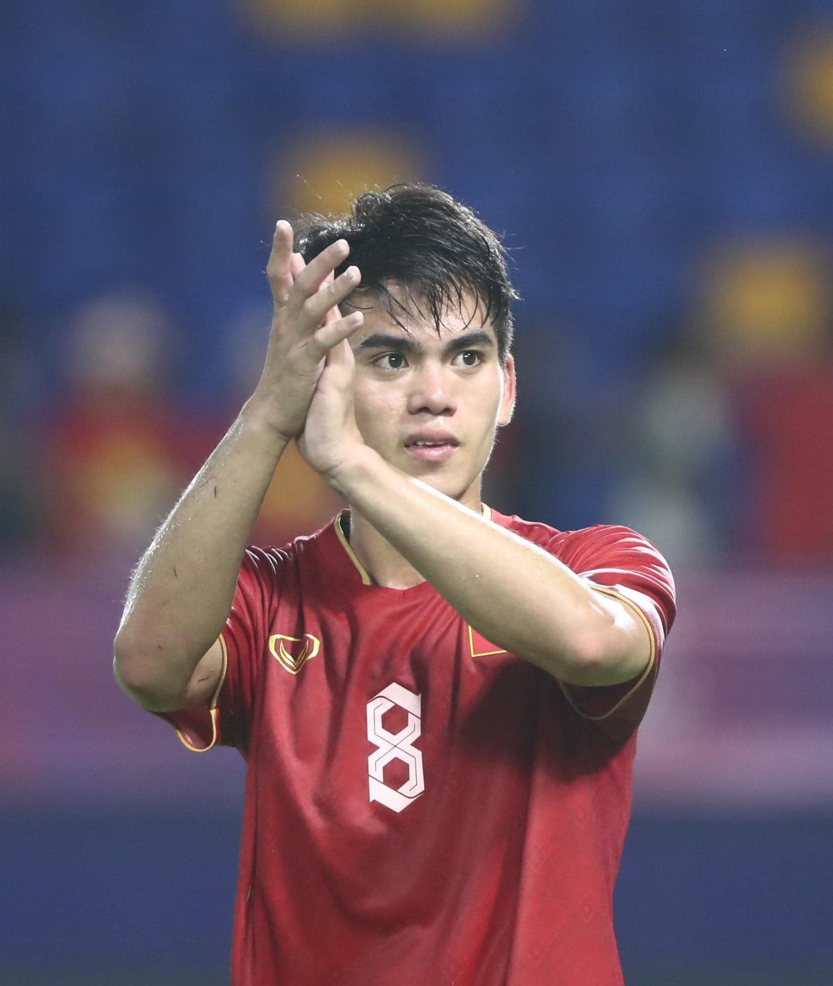 Văn Khang đã tham dự kỳ SEA Games trước (tại Campuchia) nhưng kết quả không được như mong muốn của người hâm mộ. Chính vì vậy, với vai trò đội trưởng tại SEA Games 33, tiền vệ thuộc biên chế Thể Công đã thể hiện quyết tâm rất cao. (Ảnh: IGNV)