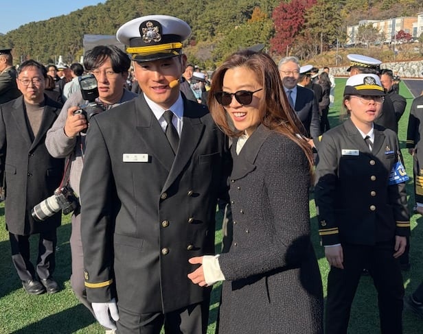 Lim Se-ryung, sinh năm 1977, là con gái cả của gia tộc Daesang - một trong những tập đoàn thực phẩm lớn nhất Hàn Quốc. Trong ảnh, bà Lim xuất hiện tại lễ trao quân hàm sĩ quan hải quân của con trai Lee Ji-ho (24 tuổi) hôm 28/11.