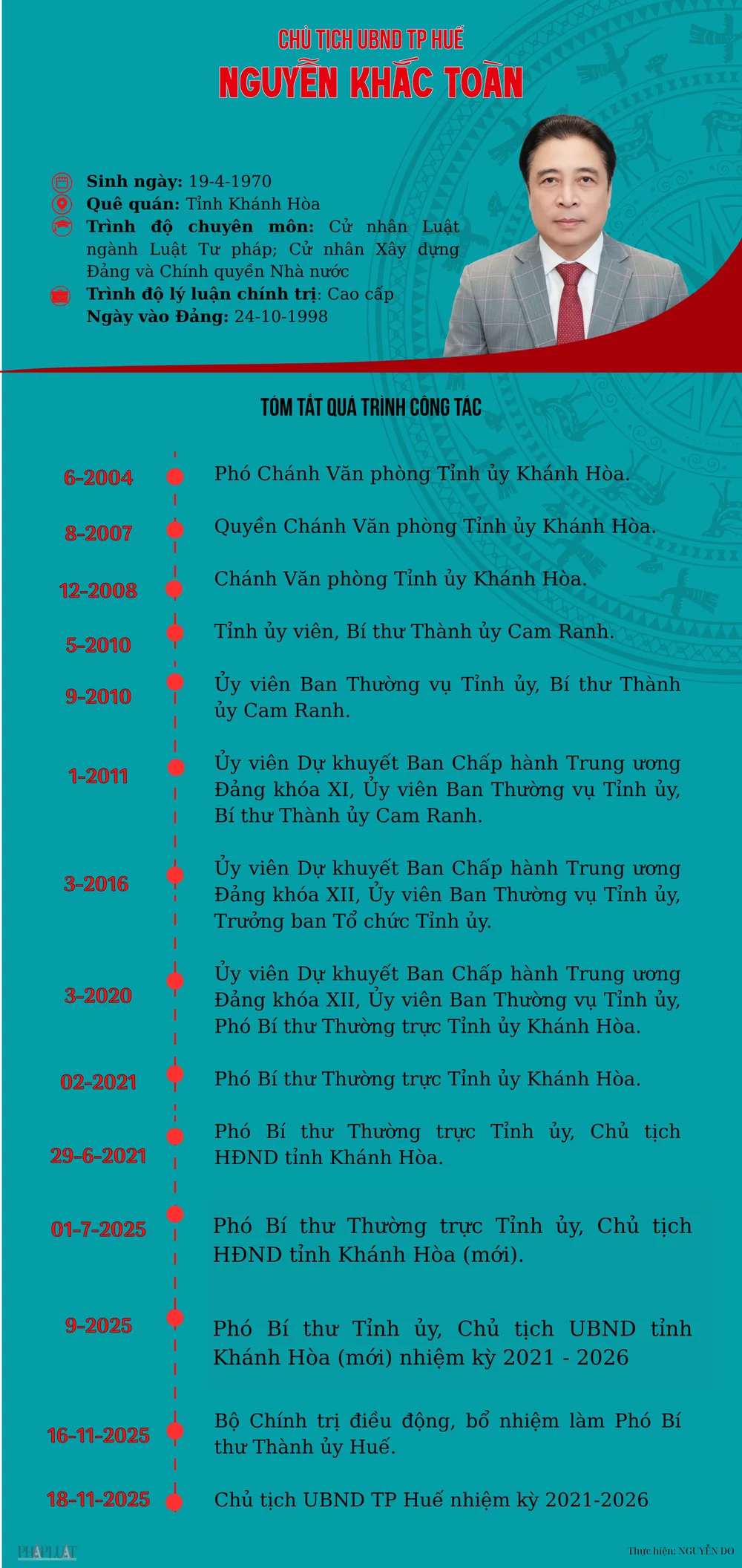 Tóm tắt quá trình công tác của tân Chủ tịch UBND TP Huế Nguyễn Khắc Toàn.