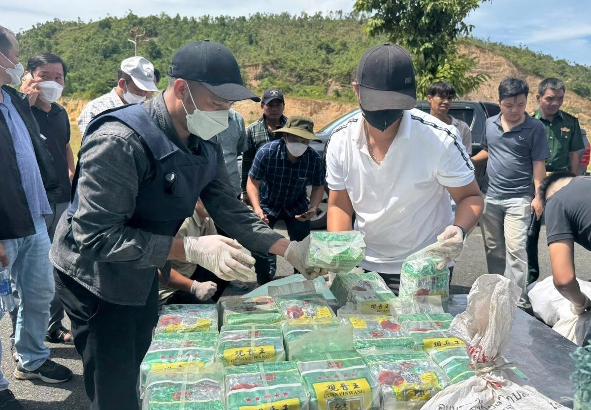 Các trinh sát Ban chuyên án kiểm đếm số ma túy lớn do Long vận chuyển.