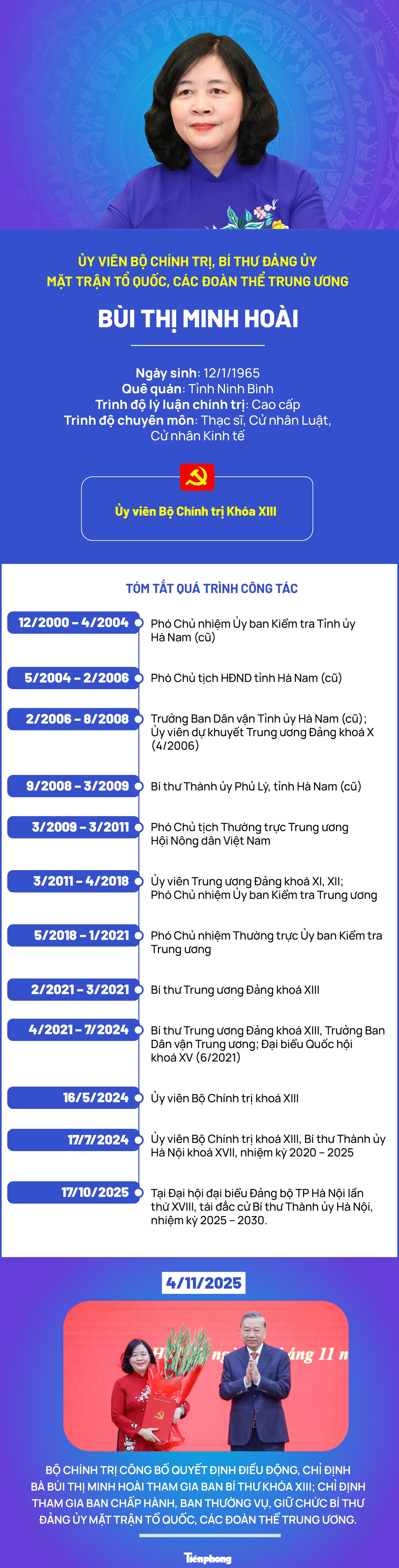 Nguồn Tiền Phong : https://tienphong.vn/chan-dung-uy-vien-bo-chinh-tri-bi-thu-dang-uy-mat-tran-to-quoc-cac-doan-the-trung-uong-bui-thi-minh-hoai-post1793128.tpo