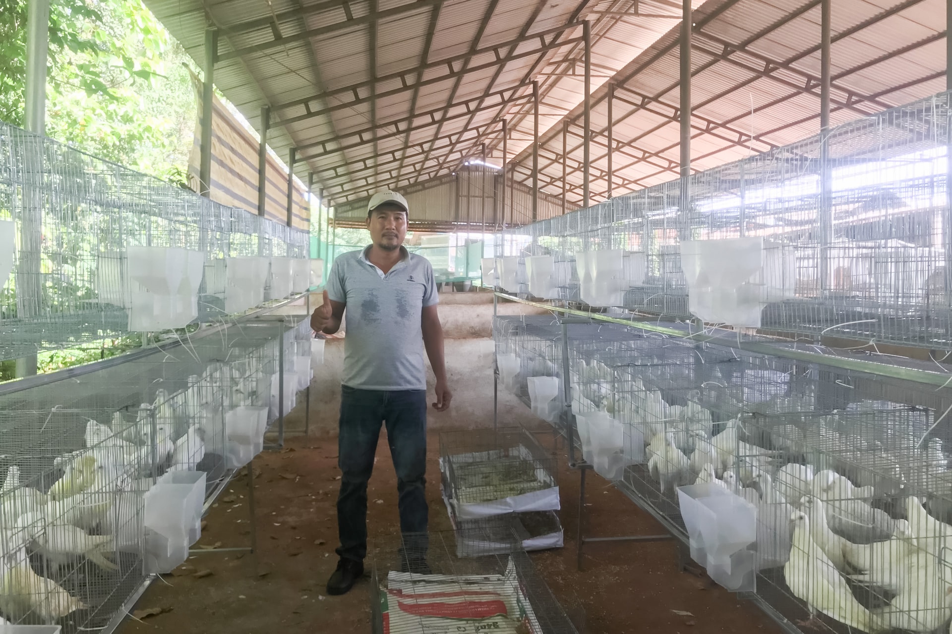Chủ trang trại chia sẻ rằng, để hoàn thành quy trình chăn nuôi tuần hoàn gắn với du lịch xanh phải trải qua thời gian gần 10 năm kiến thiết, xây dựng đồng bộ quy trình kỹ thuật khép kín một chuỗi giá trị từ sản xuất, chế biến đến tiêu thụ. Đến nay, nếu trừ sản lượng đáng kể con giống vật nuôi cung cấp cho nông hộ thành viên HTX và sản phẩm thịt chế biến đáp ứng nhu cầu du khách tham quan thì trang trại luôn duy trì “cơ số” 50 cặp bồ câu sinh sản trên 2 tầng chuồng nuôi lắp đặt trên diện tích khoảng 100 m2; gà rừng 300 con nuôi nhốt kết hợp với nuôi thả trong khuôn viên đất cát khoảng 1.000 m2; đào hang, xây tường nuôi dông trong phạm vi hơn 100 m2 với mật độ 20 con/m2.