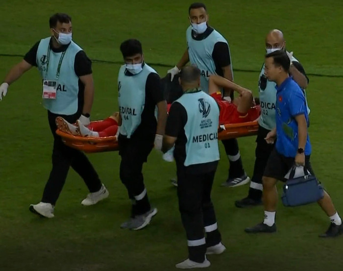 Phút 31 trận bán kết, một khoảnh khắc khiến băng ghế huấn luyện U23 Việt Nam lặng đi. Sau pha va chạm mạnh với Xiang Yuwang, trung vệ Nguyễn Hiểu Minh ôm chặt đầu gối phải và nằm sân đau đớn. Các đồng đội lập tức ra dấu yêu cầu thay người, trong khi bản thân Hiểu Minh không giấu được những giọt nước mắt. Đó cũng là khoảnh khắc HLV Kim Sang Sik rất lo lắng.